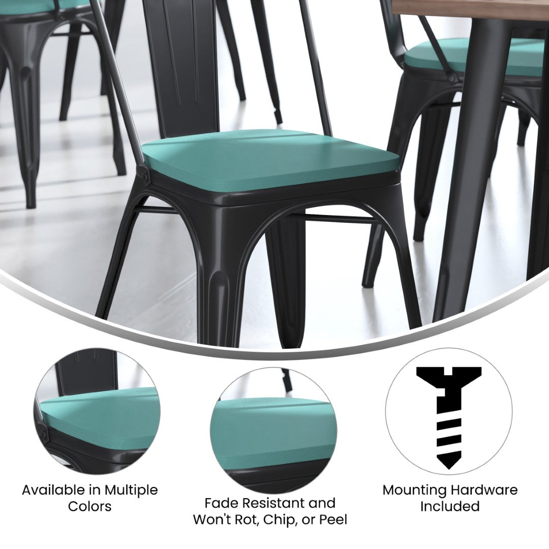 Give your metal dining chairs, counter stools, or barstools an instant style and durability upgrade with this set of four poly resin replacement seats. Crafted to mimic the warmth of wood while offering all-weather performance, these seats are ideal for restaurants, cafes, patios, or home dining areas. Lightweight yet sturdy, they install quickly with included hardware and are simple to maintain — perfect for busy commercial settings or everyday residential use.