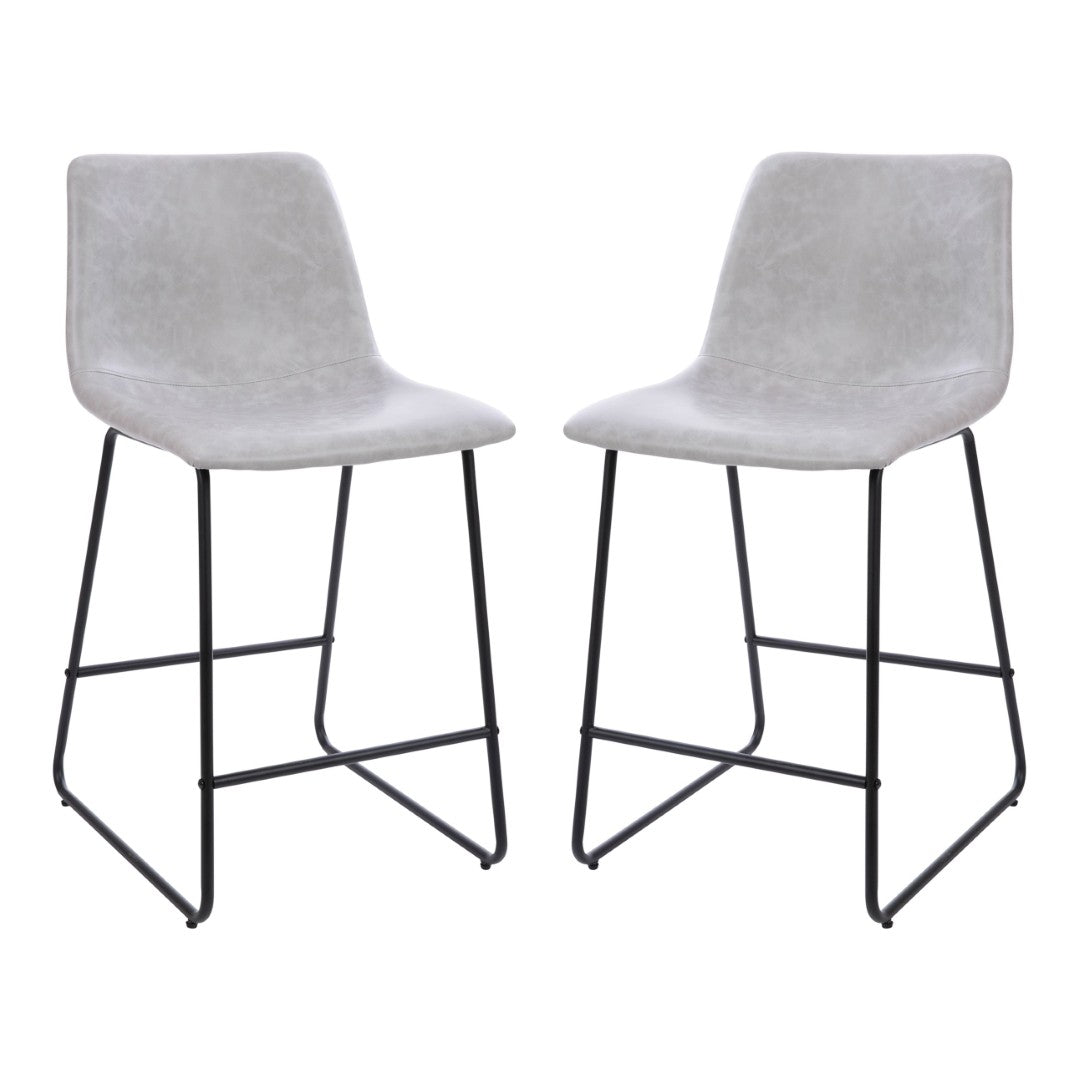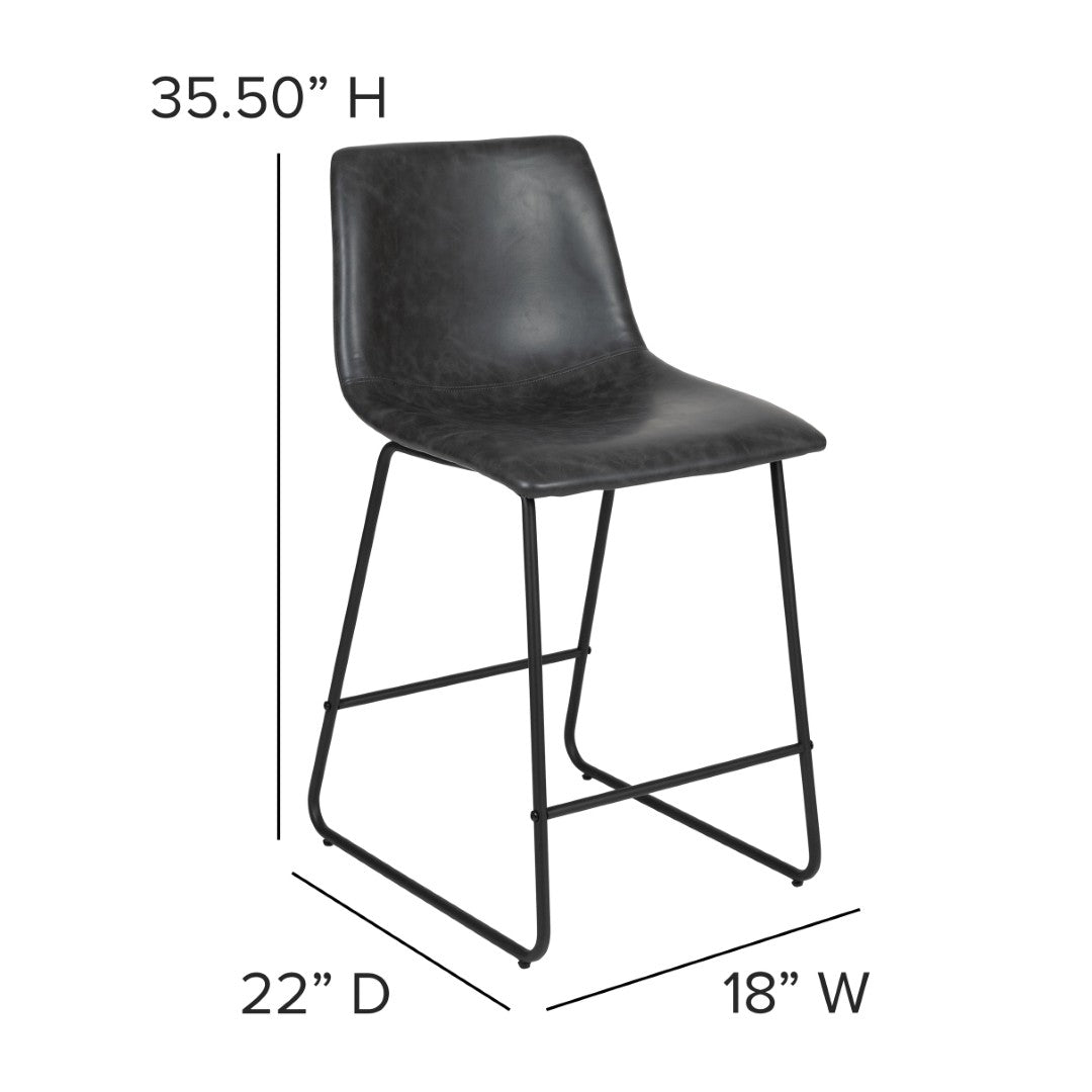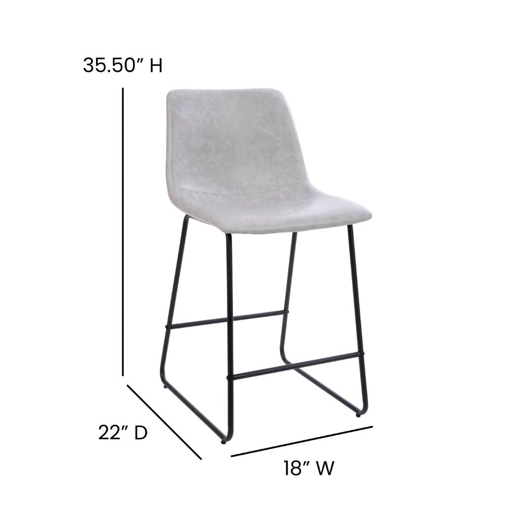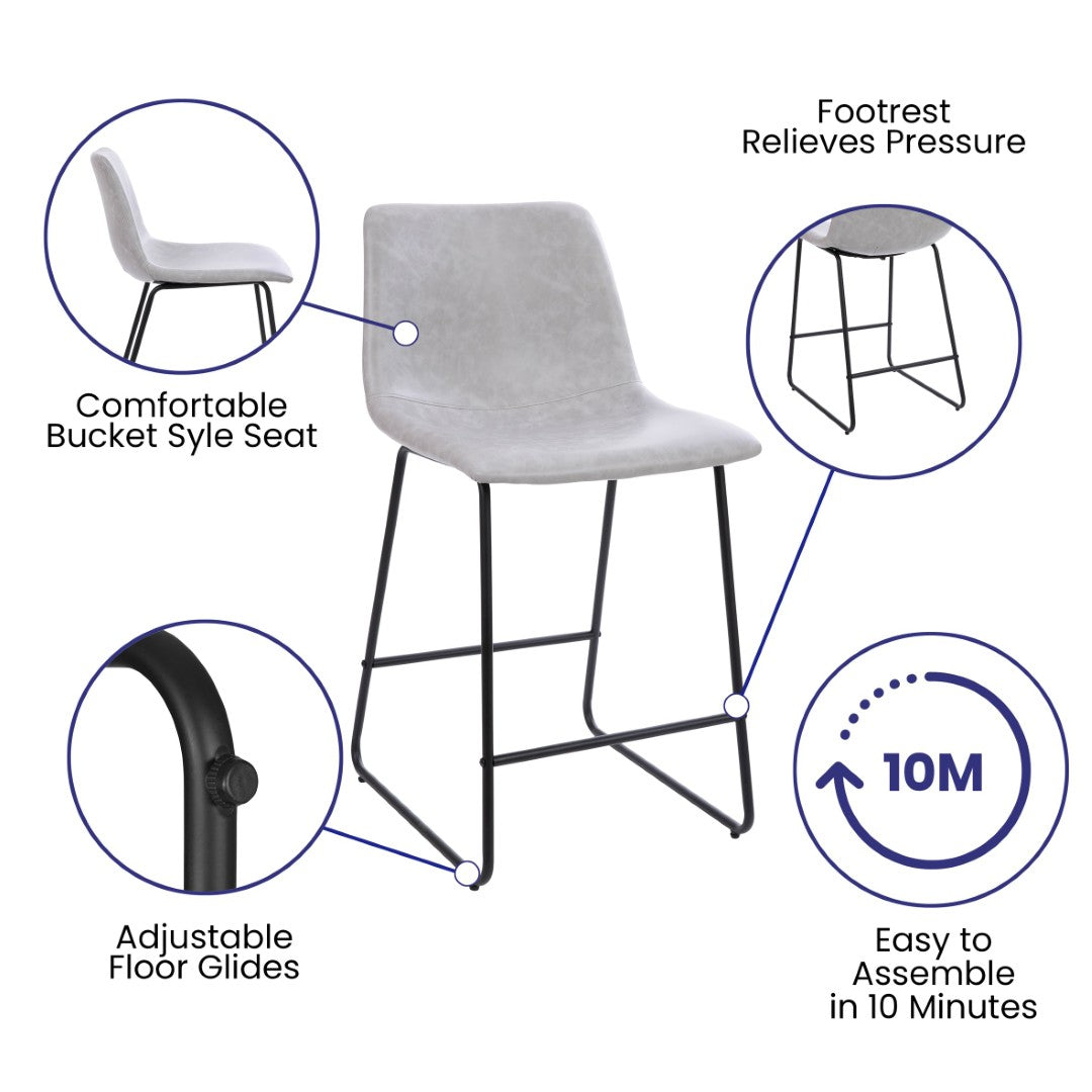 Bring modern comfort and durable style to your kitchen or bar area with these Reagan counter-height barstools. Designed for everyday use and social gatherings, the contoured bucket seat and supportive mid-back deliver all-day comfort while the LeatherSoft upholstery balances the look of genuine leather with easy-care durability. The sled-style base and integrated footrest provide stability and posture support, making these stools a practical yet stylish addition to islands, counter-height tables, and home bars.