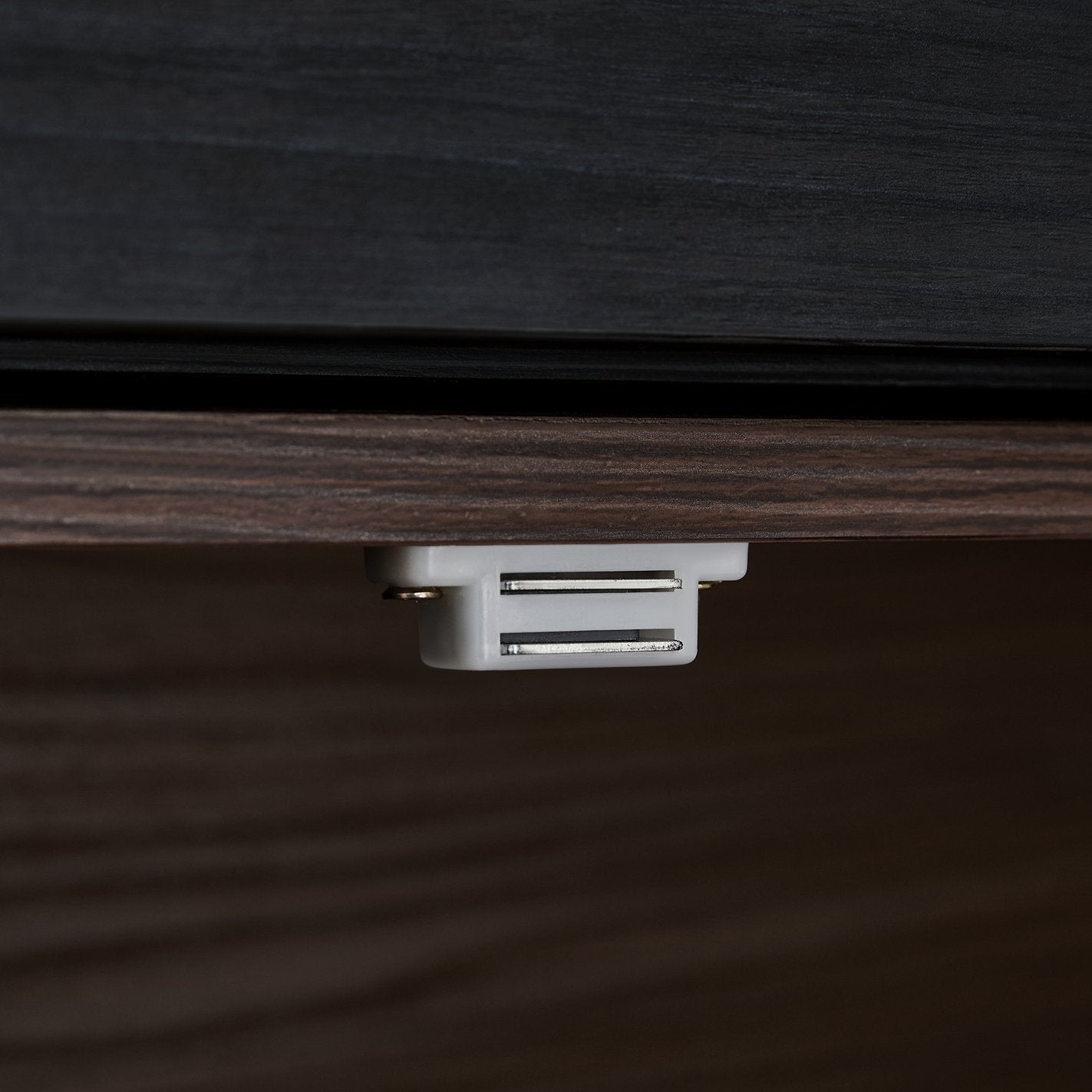 - 【Minimalist Two-tone Design】The cabinet features a harmonious blend of black oak and walnut wood grains, embodying the essence of simplicity and elegance.