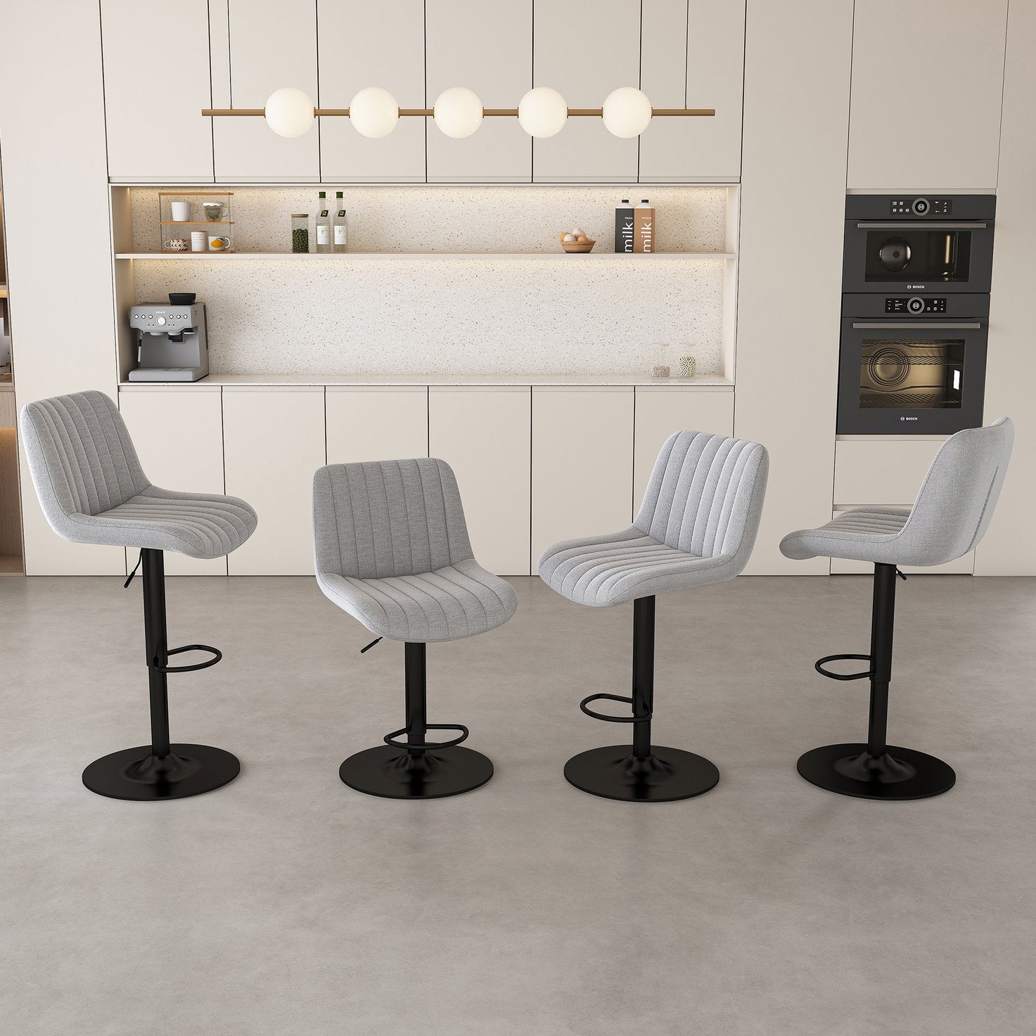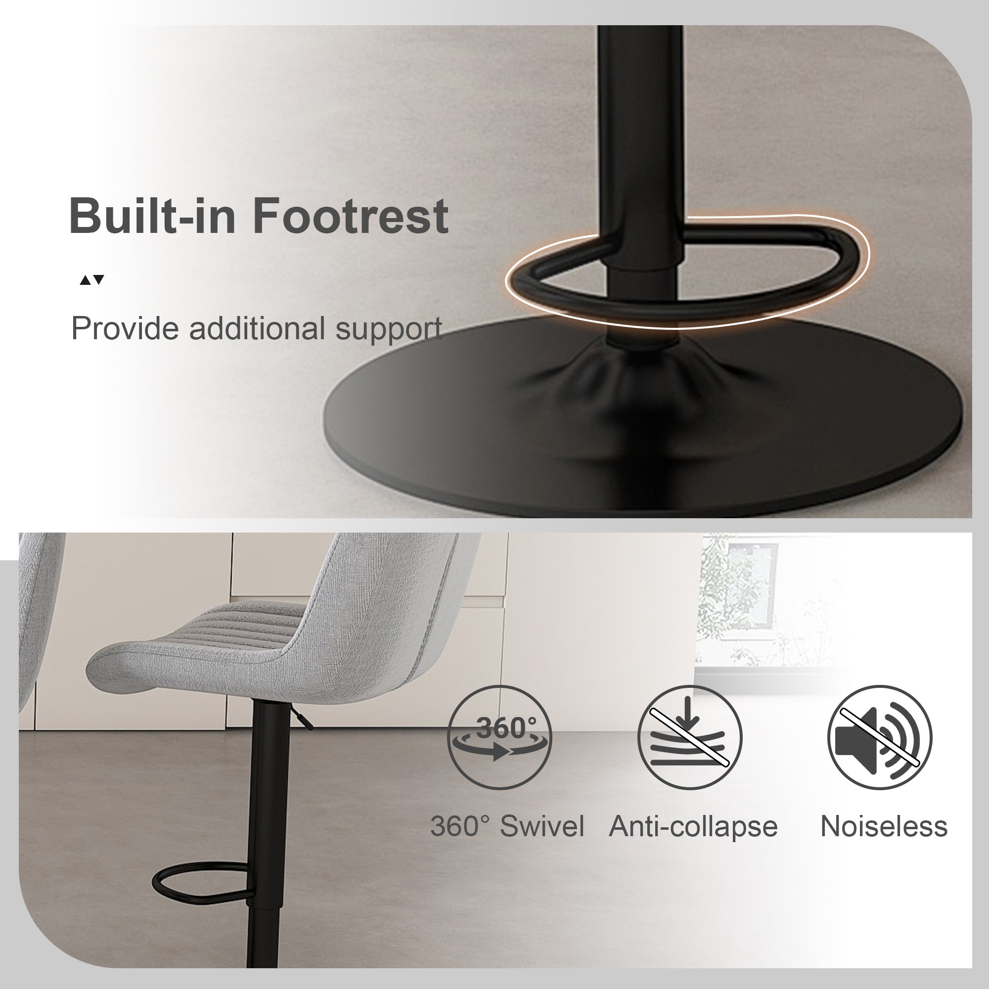Bring comfort and modern style to your kitchen island, bar counter, or dining area with this pair of adjustable swivel bar stools. Upholstered in soft grey knit fabric and supported by a sleek metal frame, these stools combine ergonomic support, smooth mobility, and easy adjustability to suit a variety of countertop heights and interior styles.