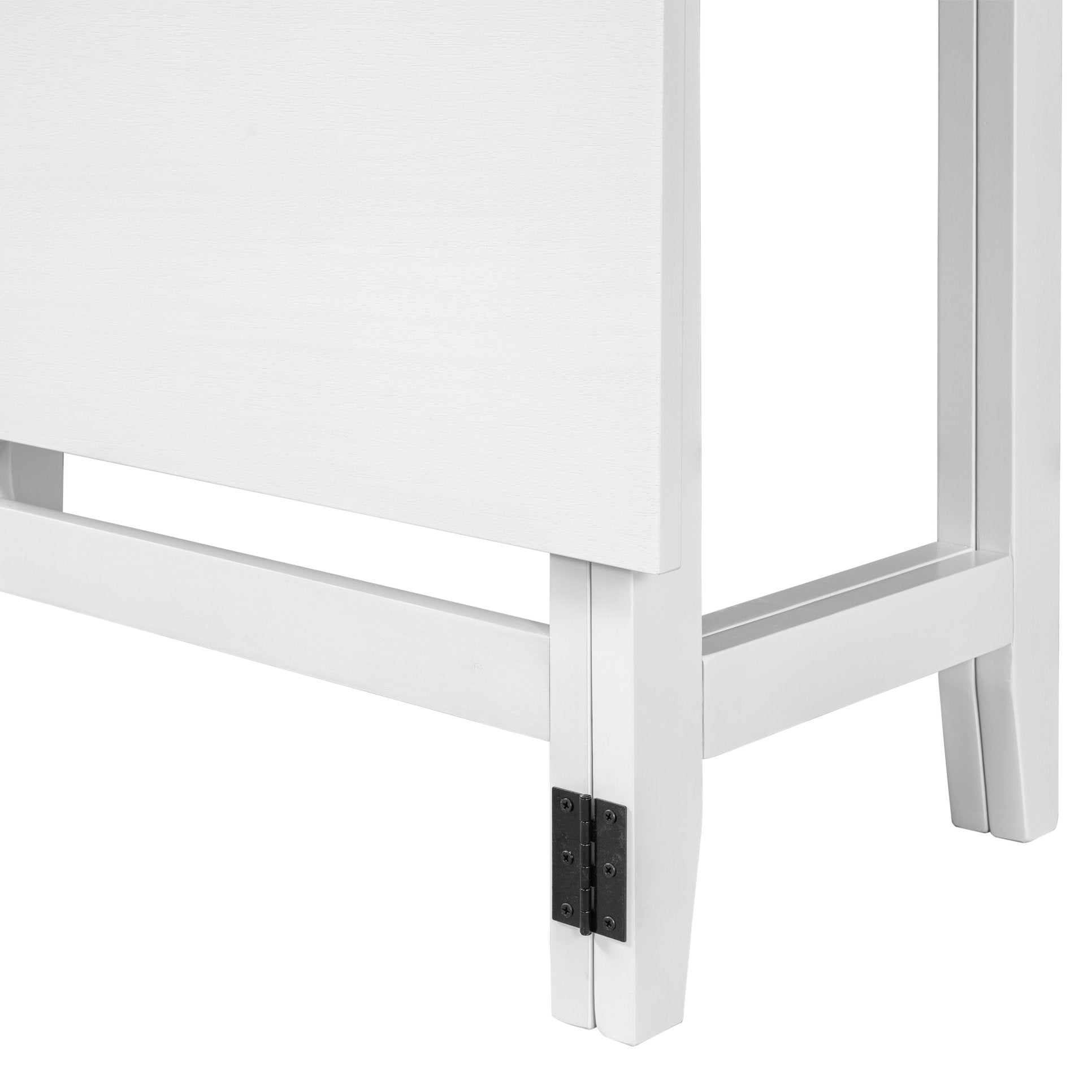 Bring a touch of farmhouse charm to compact dining areas with this versatile extendable dining table. Its clean white finish, rustic textured top, and one-side drop leaf make it ideal for small homes or apartments—expand it when guests arrive and tuck it away to save space when not in use. Built with a reinforced tabletop and solid rubberwood legs, the table offers dependable stability and an attractive rustic-modern look that complements a variety of decor styles.