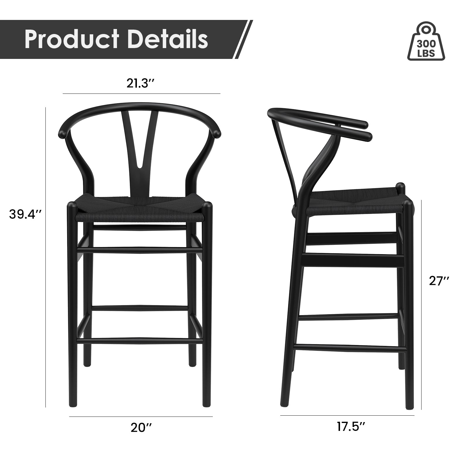 - Style: Wishbone-inspired silhouette in a sleek black finish — blends with modern, farmhouse, and Scandinavian interiors