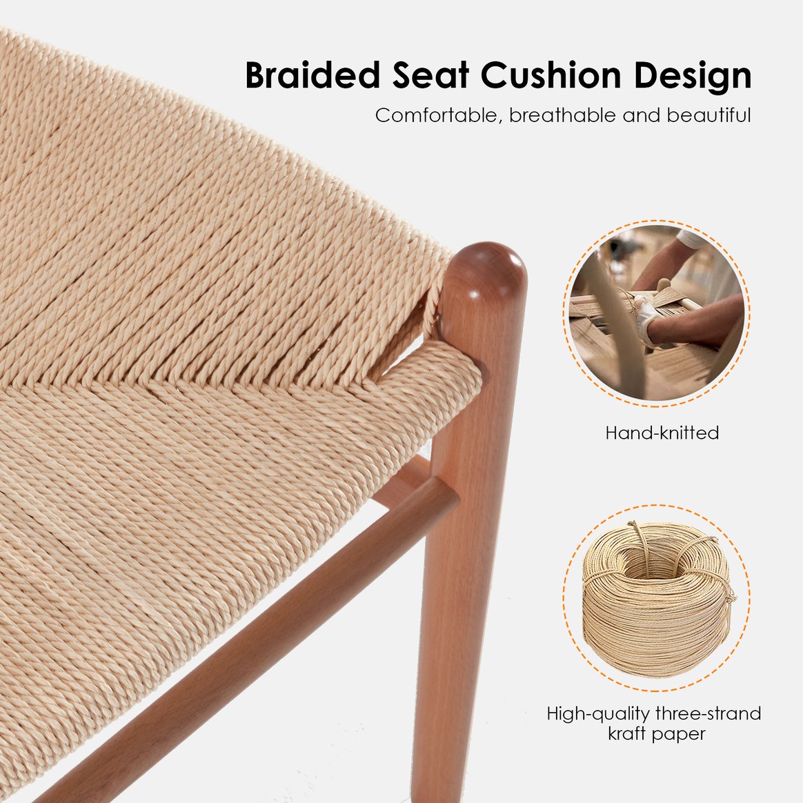 - Woven Natural Papercord Seat Design: adds a unique design element,ideal for Home and Office Use, such as Living Rooms, Dining Rooms, Bedrooms,Waiting Areas, Parties, etc.