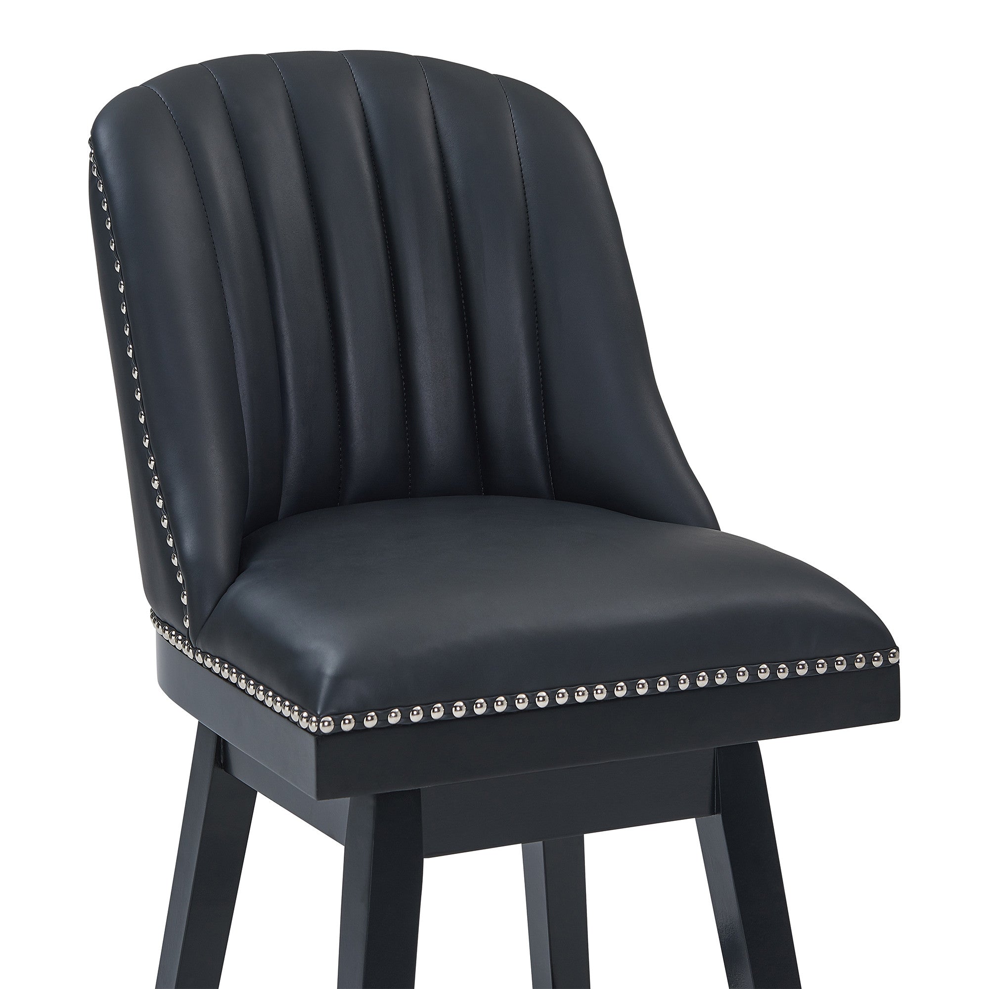 - All over Black Wood and Faux Leather Swivel Counter Height Bar Chair.