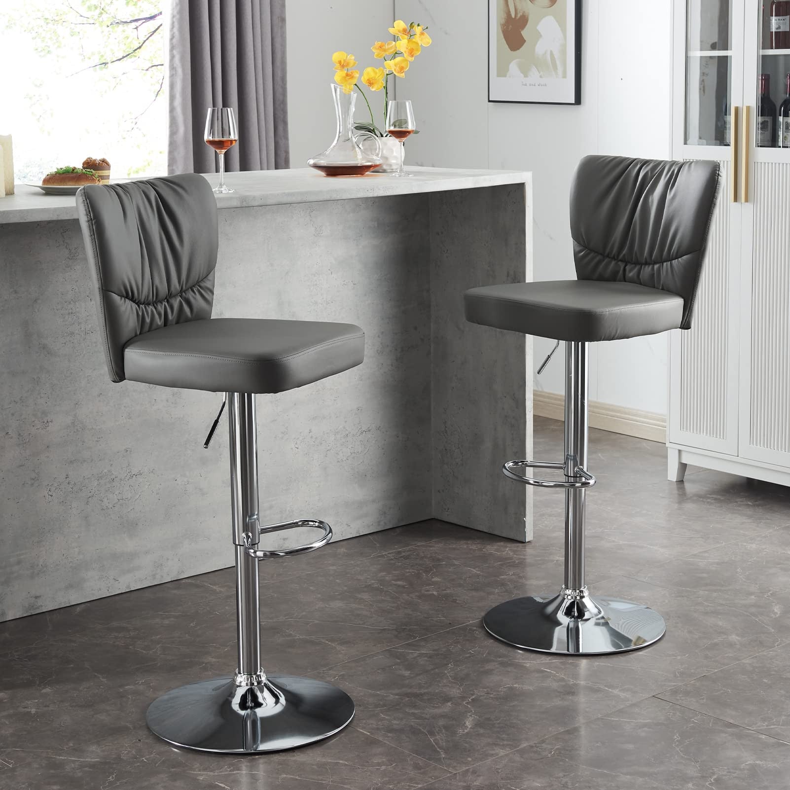- Modern and Contemporary Faux Leather and Chrome Adjustable Height Bar Chairs.