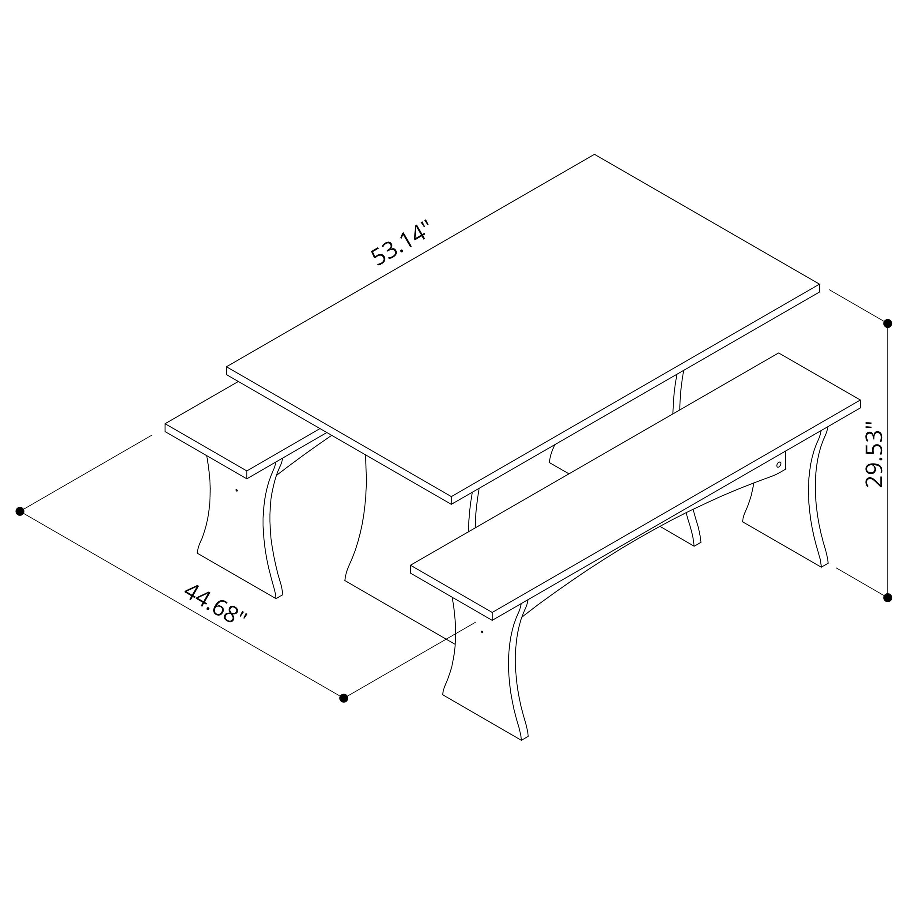 - Upon Assembly, Table Measure: 53.14L x 29.53H x 32.48D. Bench Measure: 53.14L x 18.3H x 11.81D.