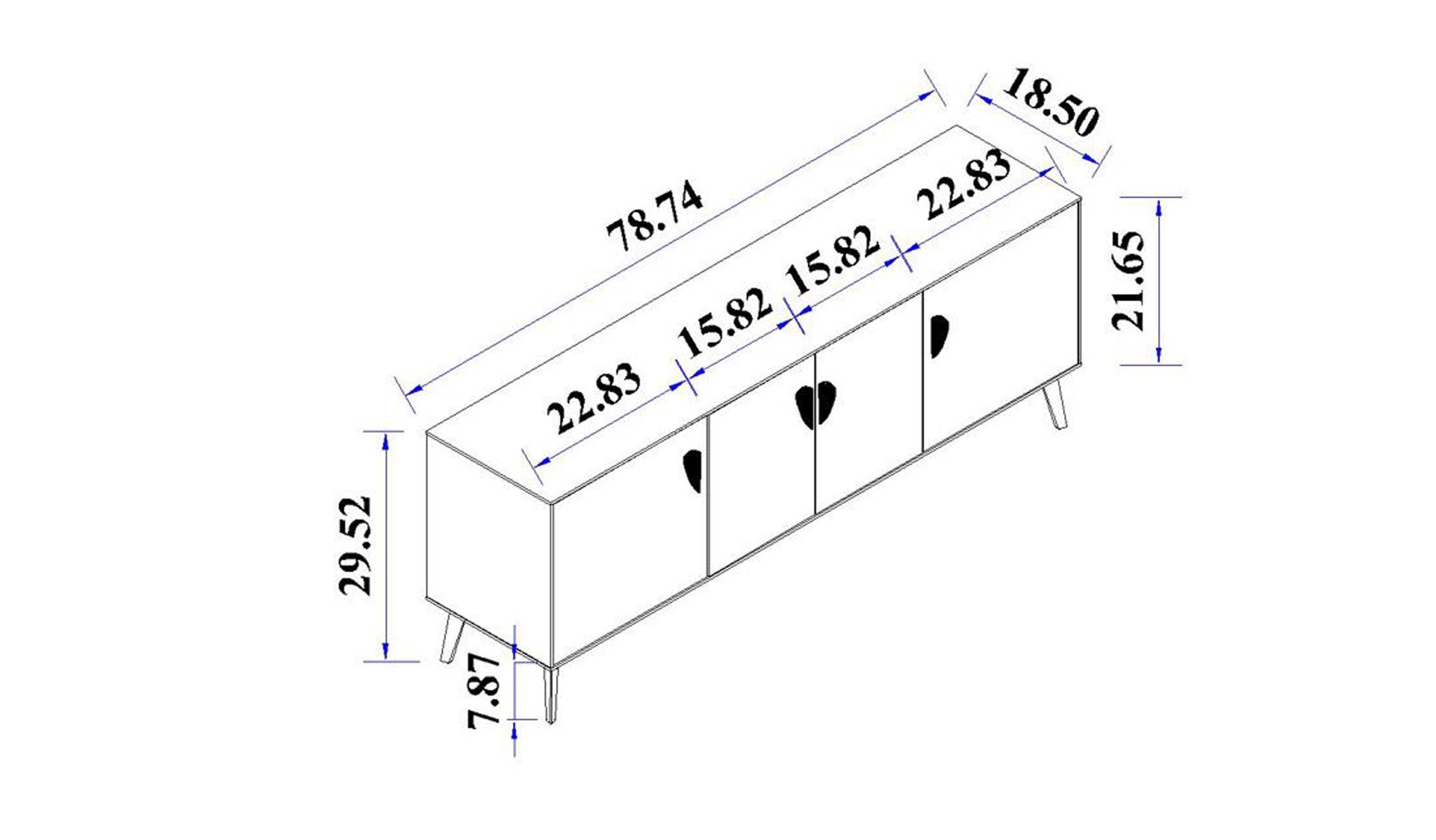 - Upon Assembly, Measure: 78.74L x 29.52H x 18.5D.