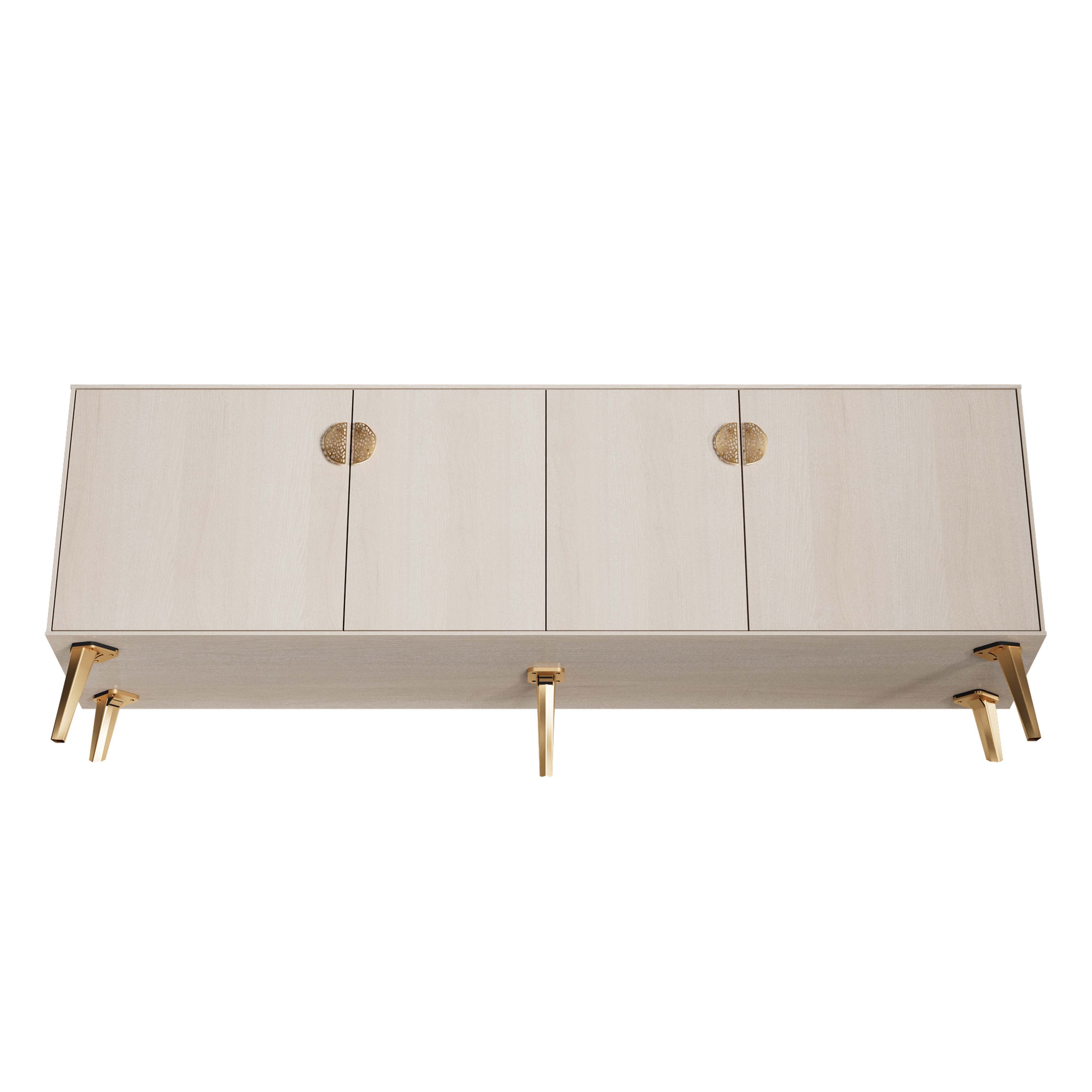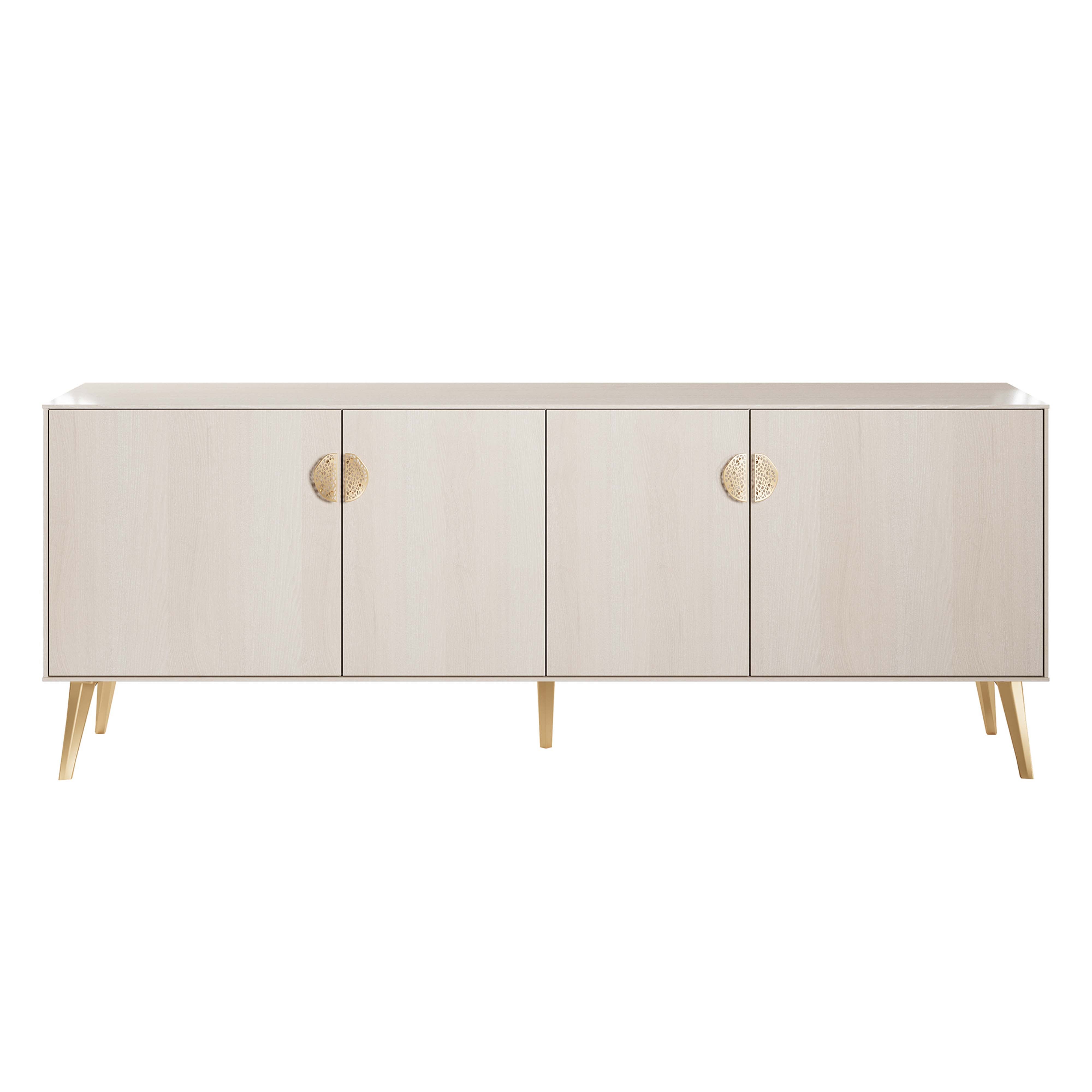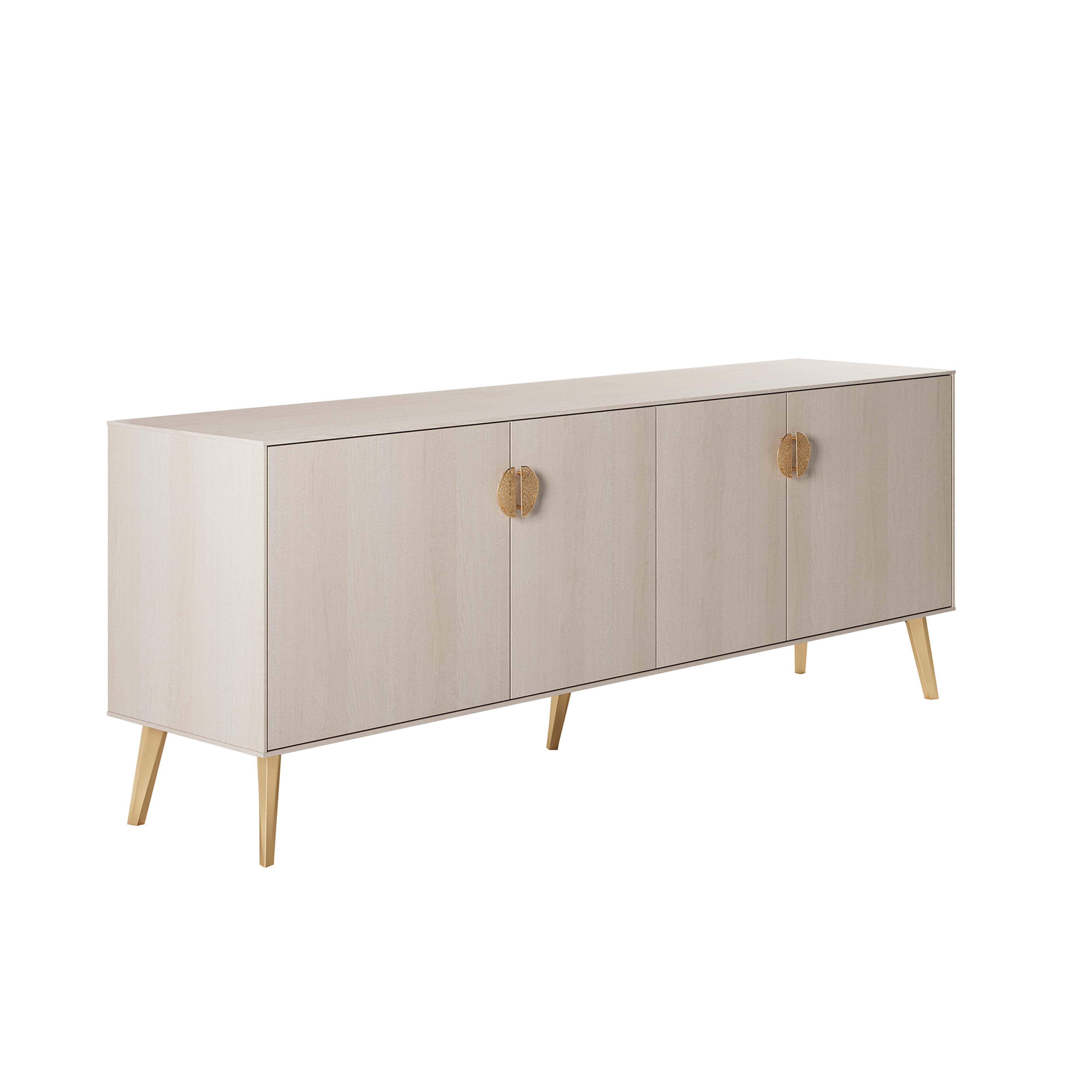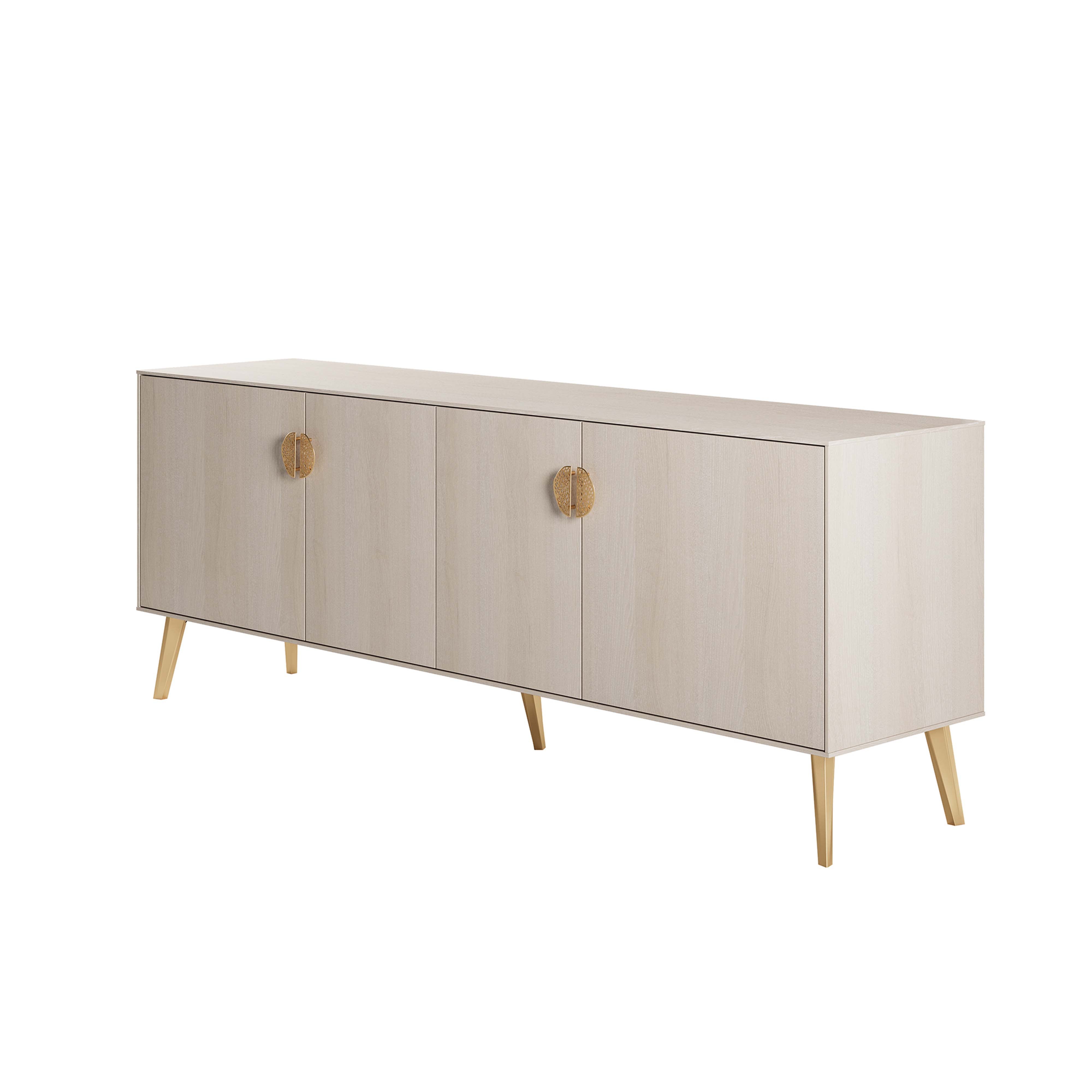 Immerse yourself in the captivating allure of the Haley Collection, a symphony of Mid-Century Modern elegance and functionality. Light neutral tones and the gentle embrace of wood grain elevate each piece, inviting you to indulge in its timeless beauty. Picture yourself surrounded by the seamless integration of style and space-saving design, as every detail whispers tales of enduring sophistication. Transform your living space into a haven of unparalleled elegance with the Haley Collection, where every element harmonizes to create a sanctuary of beauty and grace.- Mid-Century Modern Buffet Stand and Sideboard for Dining and Living Room Use.