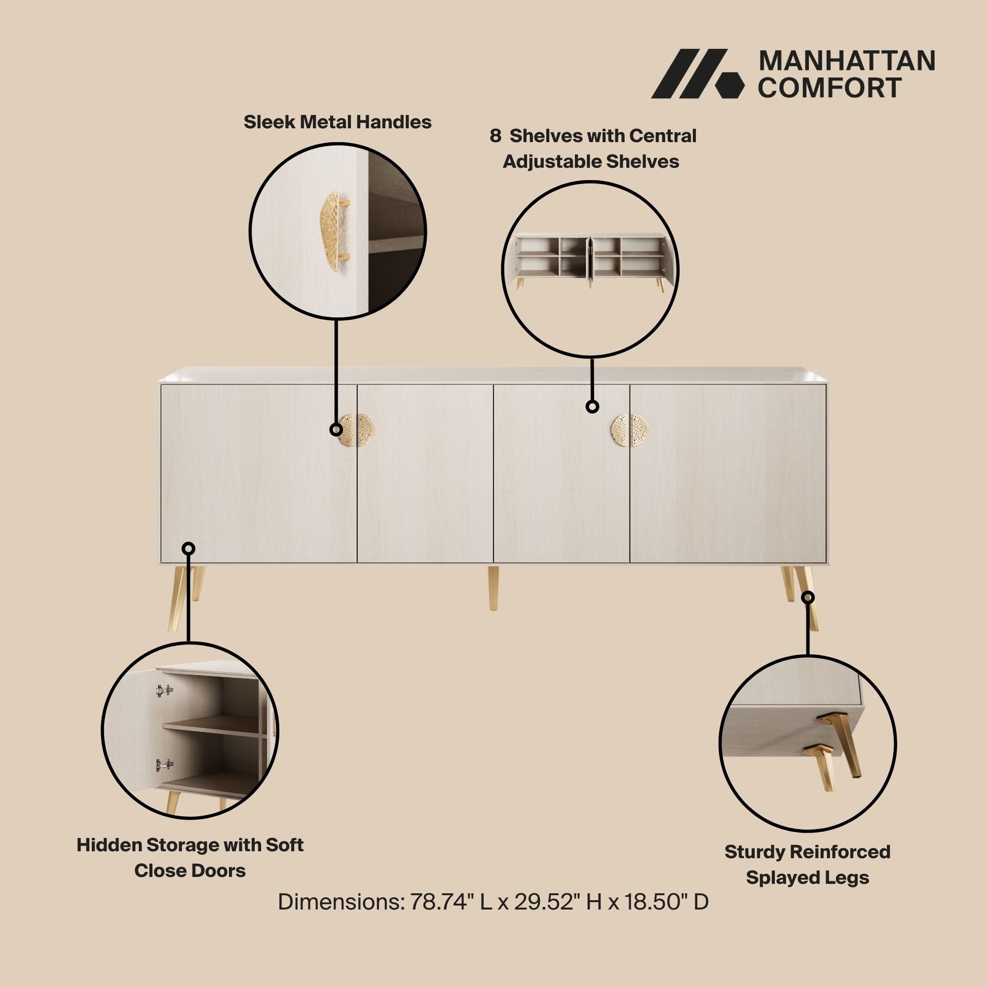 Description for SB002-WH Manhattan Comfort Haley 78.7" Mid-Century Modern Sideboard in White