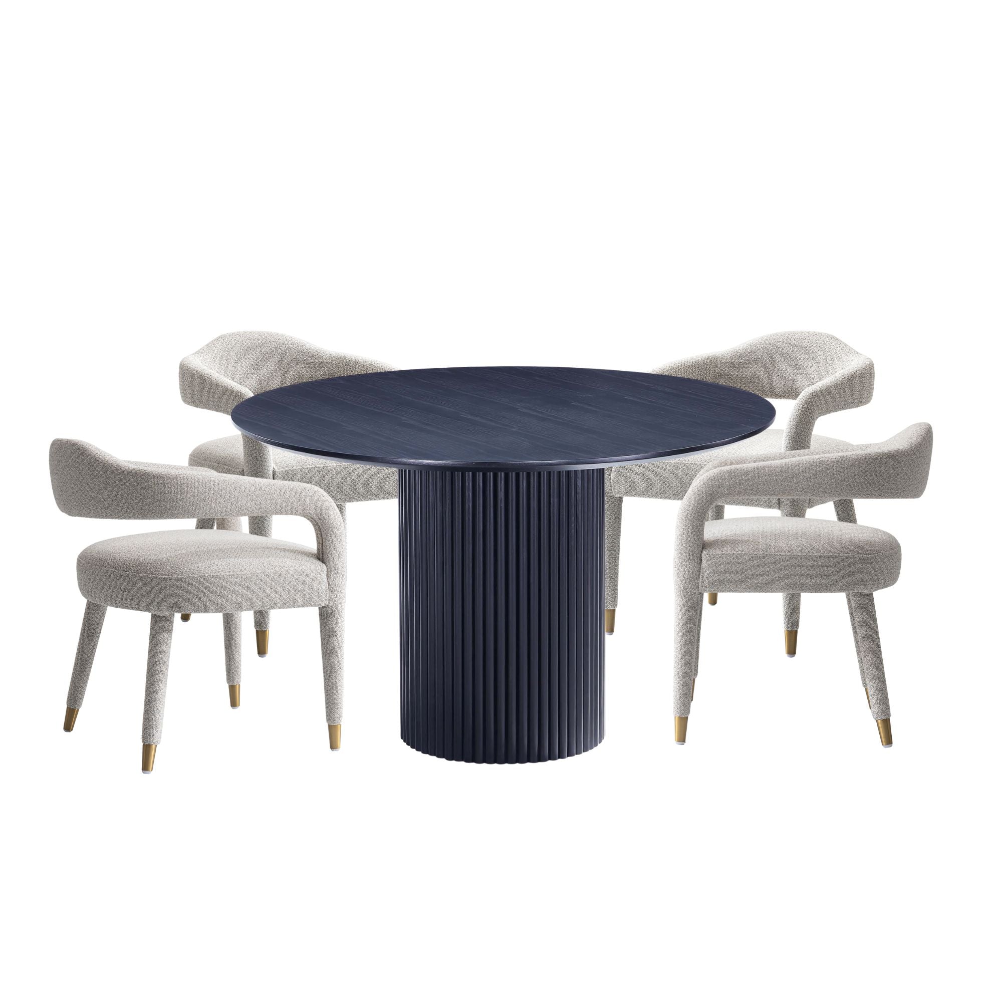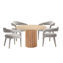 Description for 4-DT03DC093AR-NASL Manhattan Comfort 5-Piece Hathaway Modern 47.24 Solid Wood Round Dining Set in Natural with 4 Aspen Tweed Upholstered Dining Chairs in Silver Lining