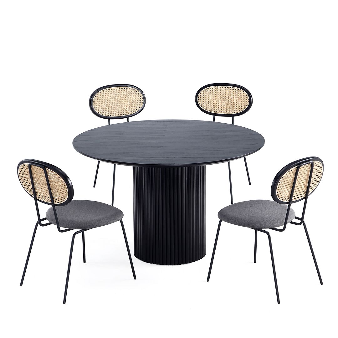 Description for 4-DT03DCCA06-GY Manhattan Comfort 5-Piece Hathaway Modern 47.24 Solid Wood Round Dining Set in Black with 4 Jardin Cane Dining Chairs