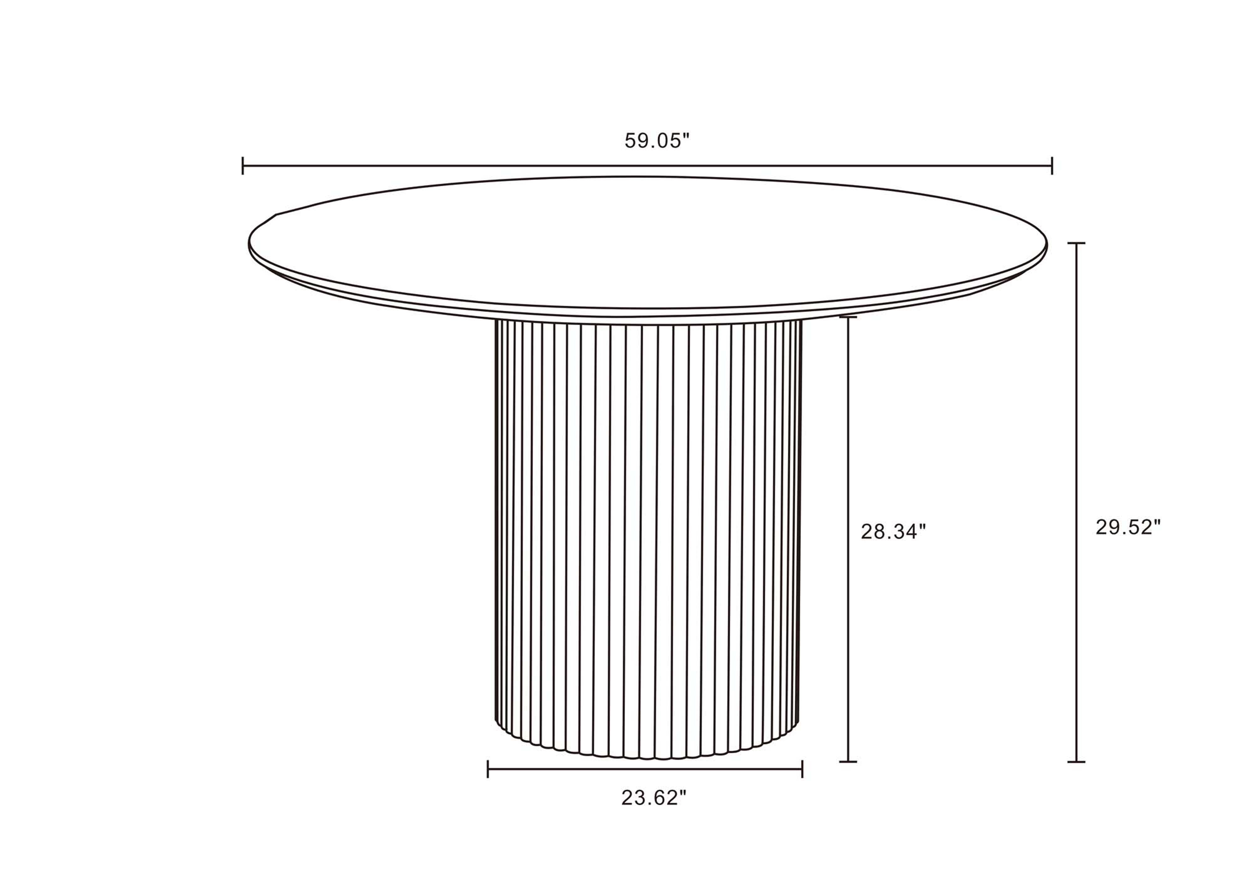 - Dining Table Features Unique Wood Ribbed Pedestal Base for Function and Style.