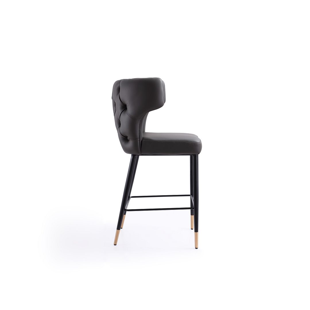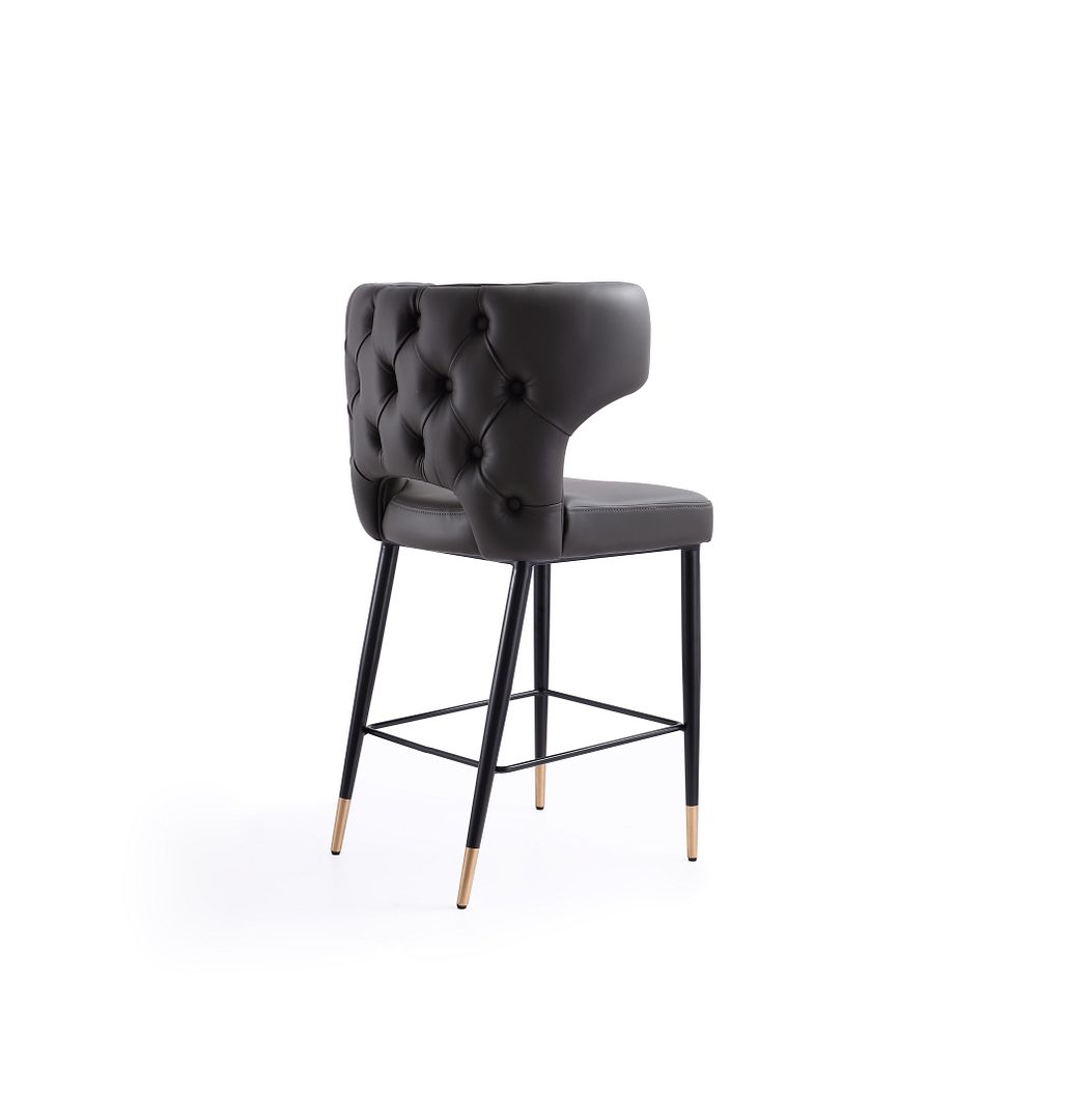Bring lavish contemporary style with a mix of vintage elegance to your dining or lounge space, with this stool. Sleek and supple leather envelopes the low set, contoured back offering ergonomic support. Atop the Chippendale modeled legs you find an invitingly plush and cozy cushioned upholstered seat, marrying comfort and luxuriously chic style. Peek around the back and you will find a button-tufted design that radiates an upscale glam tone. The mid-century inspiration meets clever modern design in this lounge stool.- Mid-Century Modern Counter Stool with Backseat Perfect for Bar and Kitchen Use.