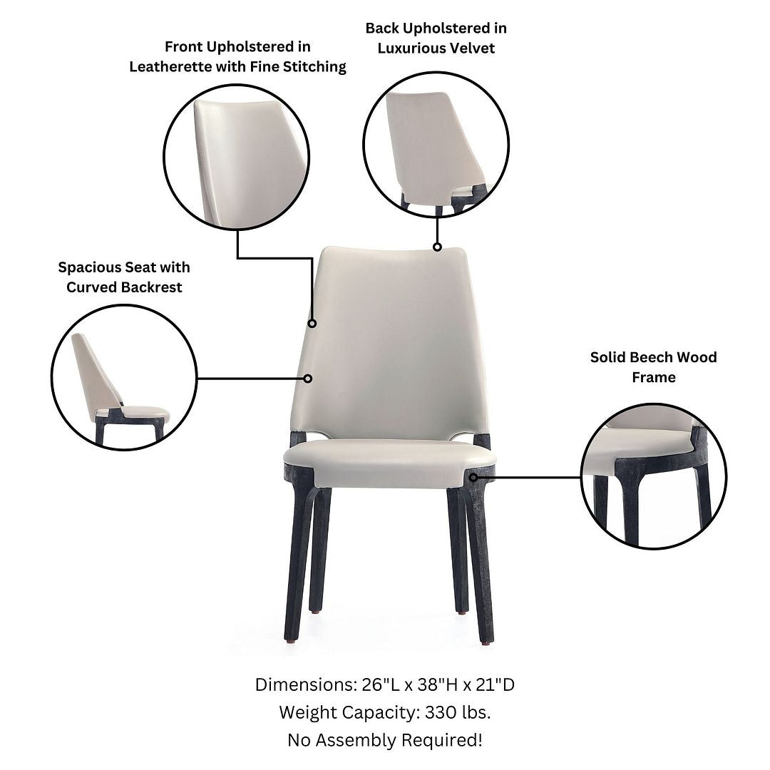 Manhattan Comfort Kara Dining Chair is all about love. With the front leatherette material and fine velvet backing, this chair will bring both style and comfort to your home. Available with and without arms. Solid beech wood legs adding great sophistication, quality, and design. This product is commercial graded.- Modern Dining Chair for Dining Room and Task Use - Set of 4.