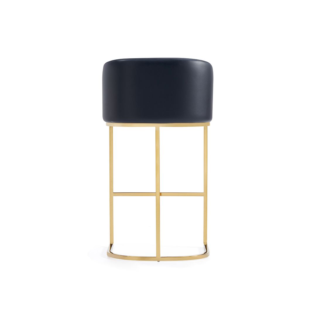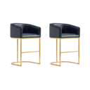 Description for 2-CS009-BK Manhattan Comfort Louvre Mid-Century Modern Leatherette Upholstered Counter Stool in Black and Titanium Gold- Set of 2