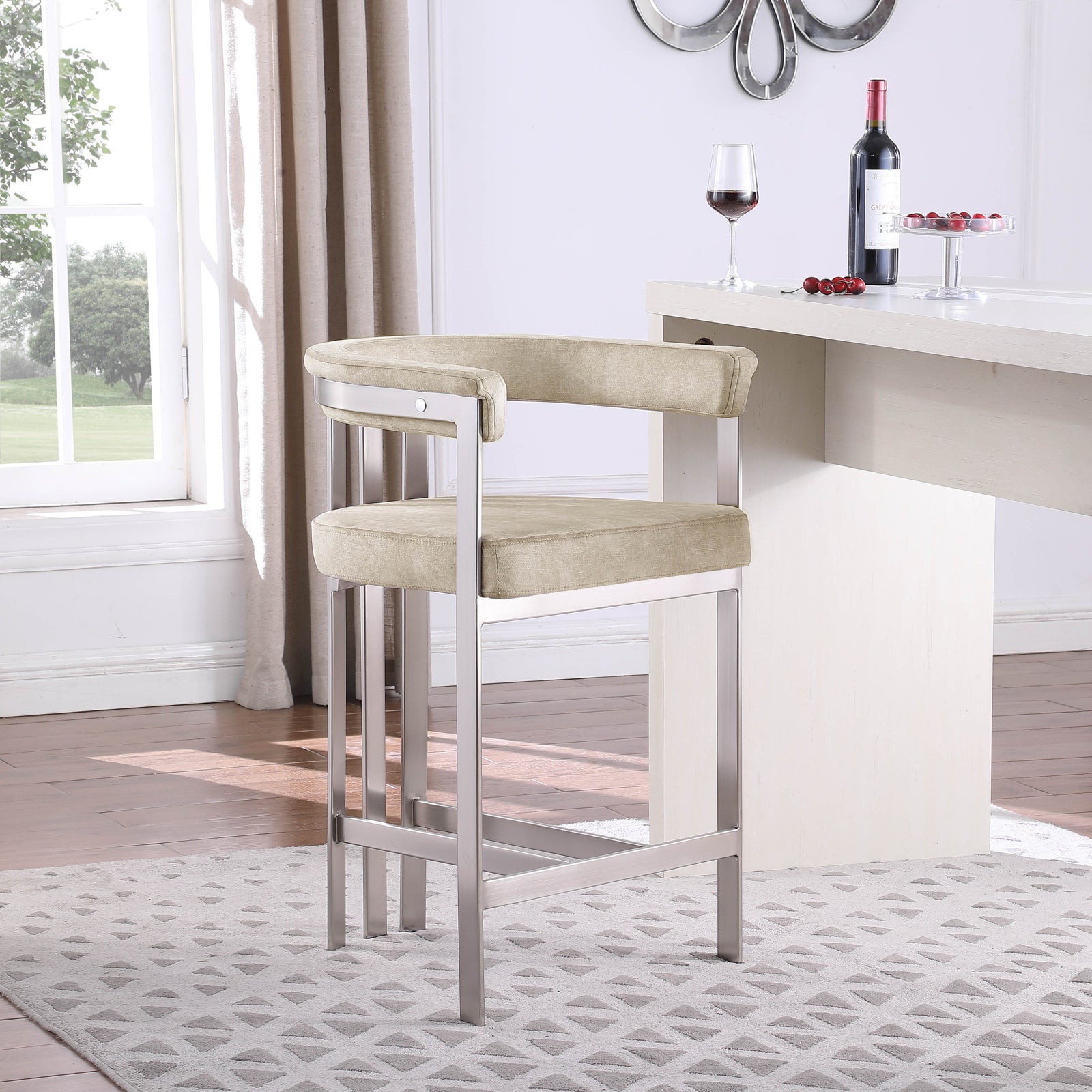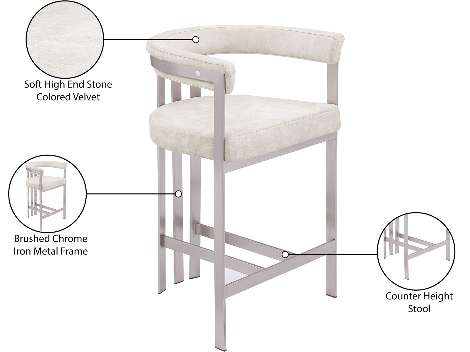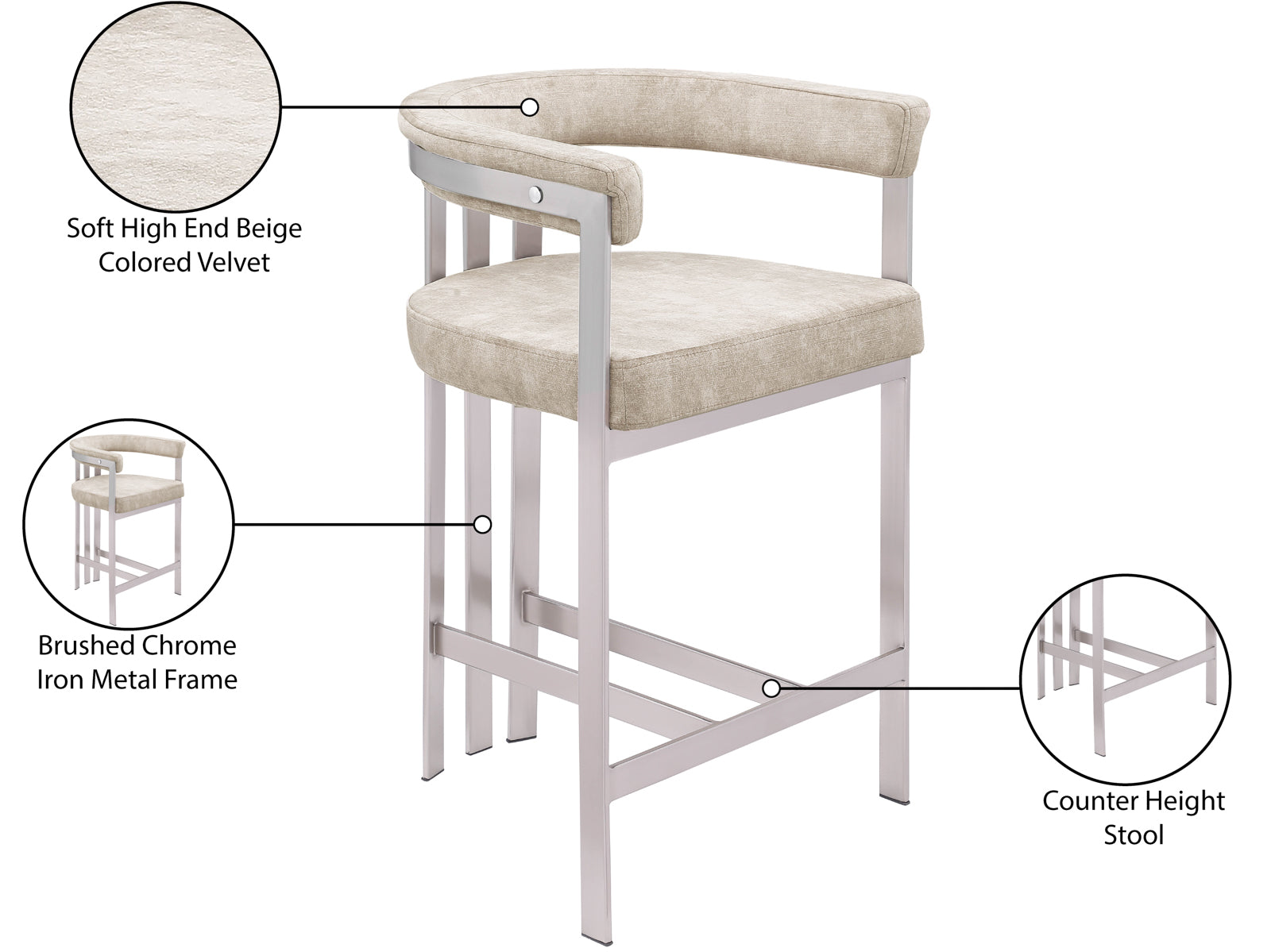 - Material: 939Beige-C Marcello Beige Velvet Counter Stool - Velvet / Iron with Brushed Silver