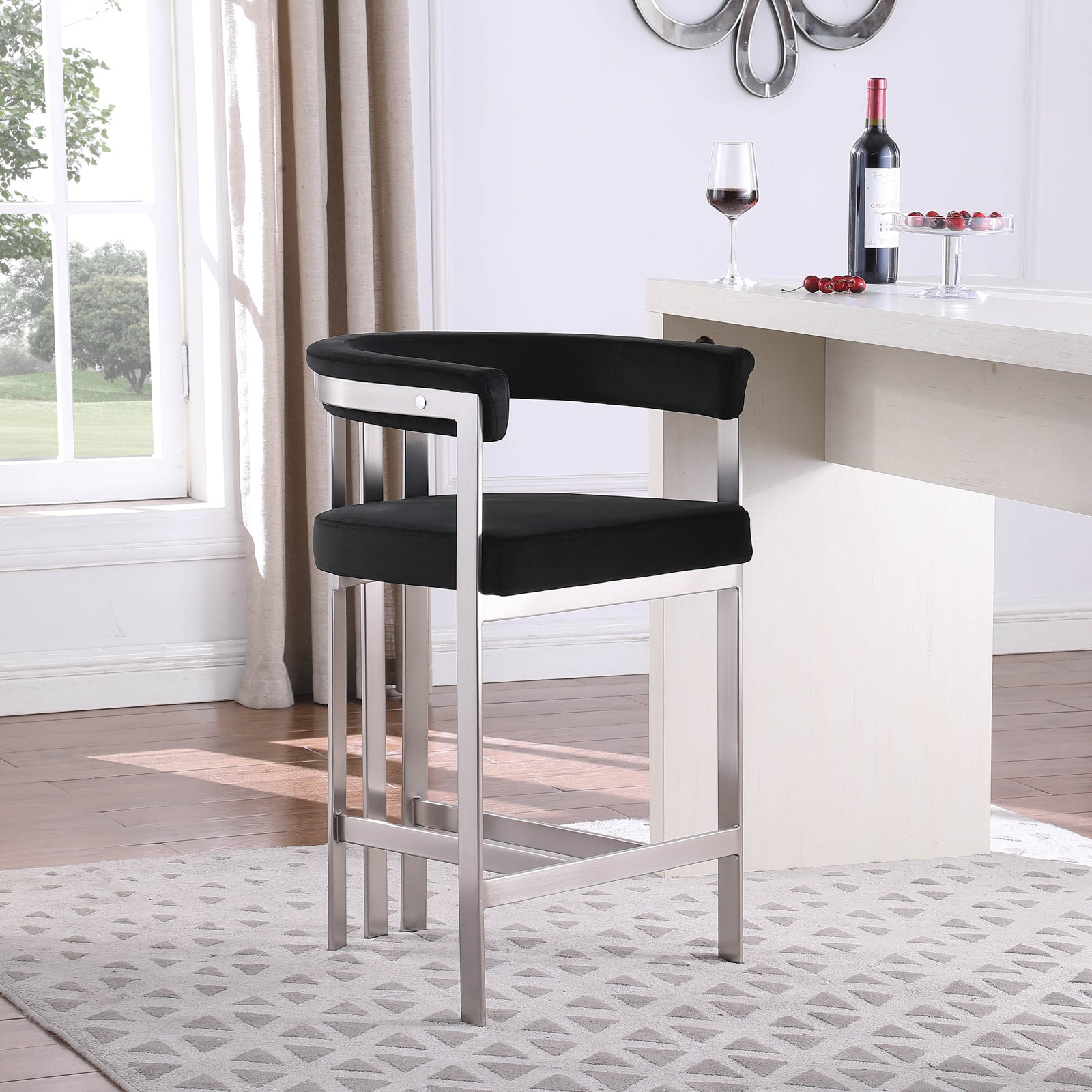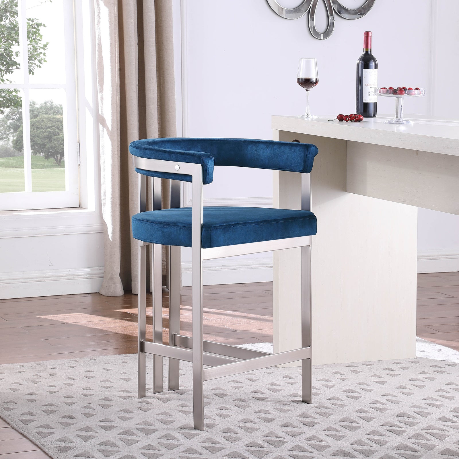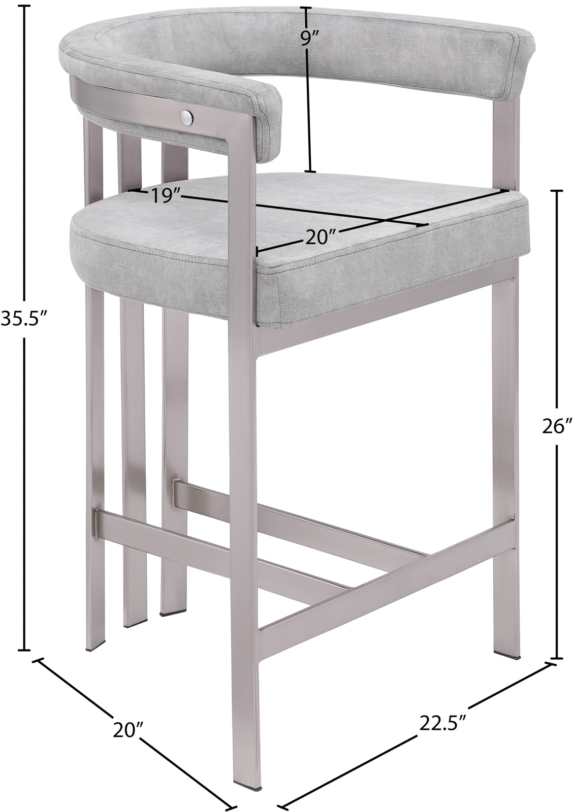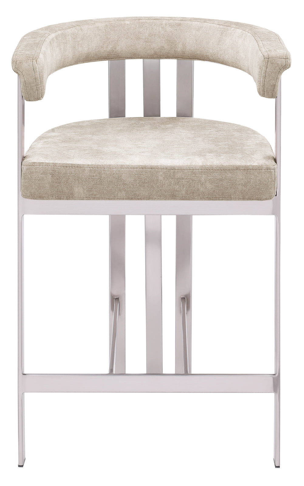 - Material: 939Beige-C Marcello Beige Velvet Counter Stool - Velvet / Iron with Brushed Silver