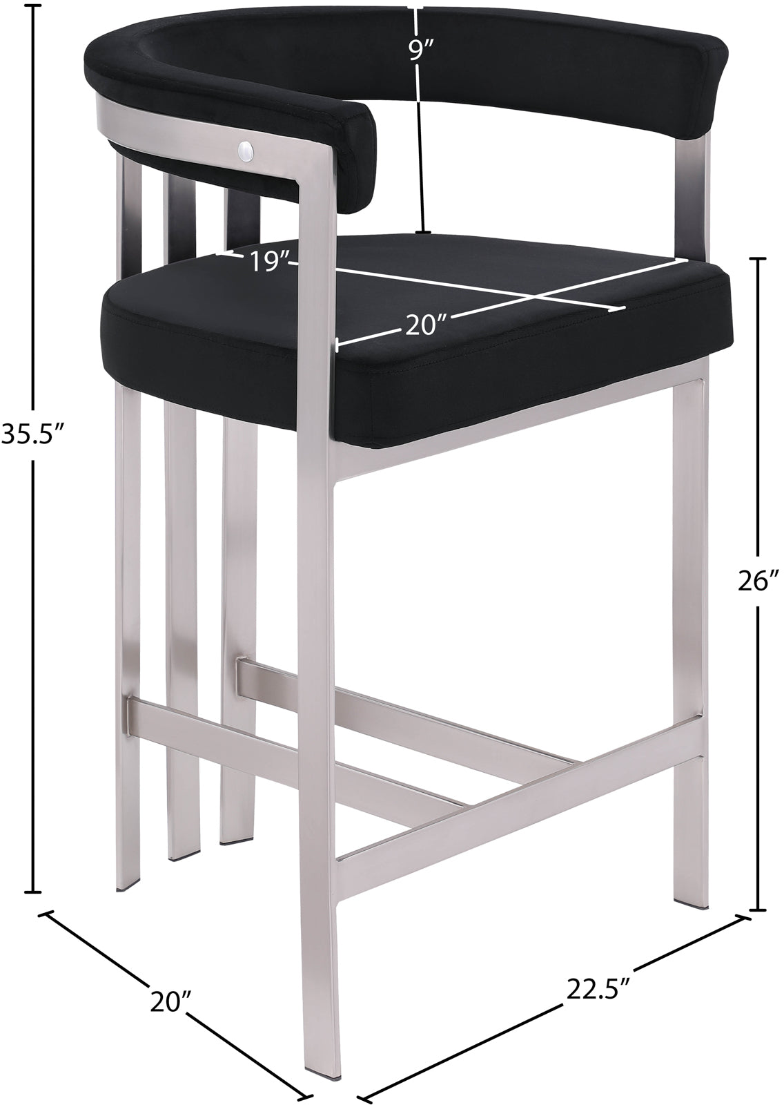 - Dimensions: 939Beige-C Marcello Beige Velvet Counter Stool - 22.5" W x 20" D x 35.5" H