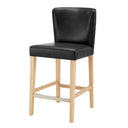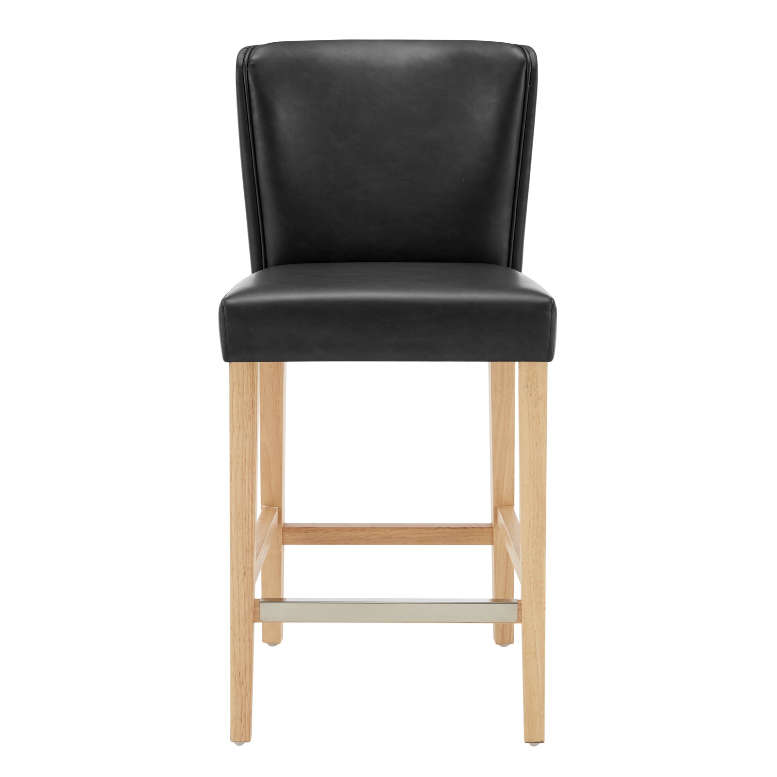 - The latest Albie collection includes this 38" height counter stool comes with metal kickplate and contrasted by the natural color legs. A delightful urban modern design with wing back profile, upholstered in easy care quality faux leather. Ideal for the dining and breakfast rooms. Includes plastic glides for safety and stability.