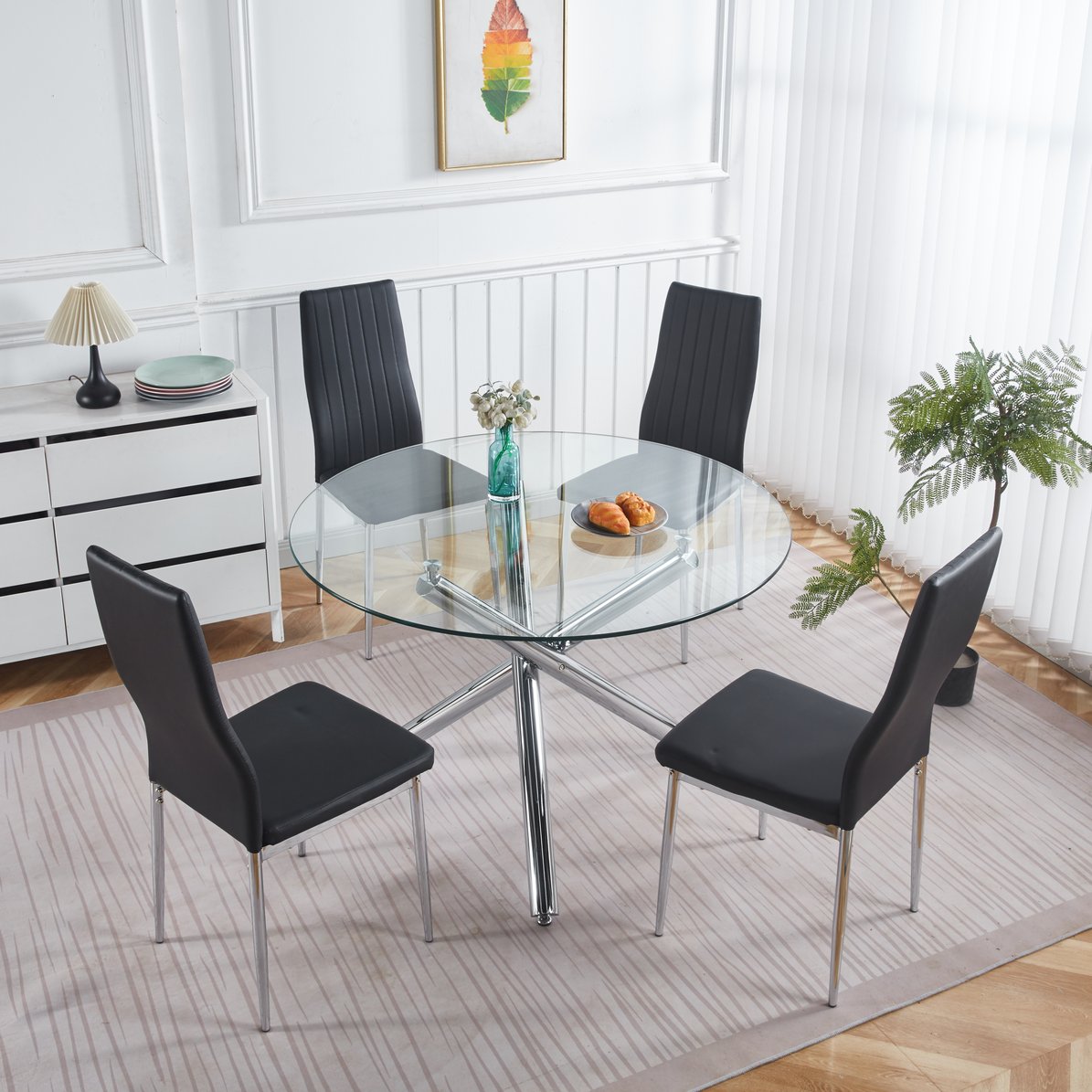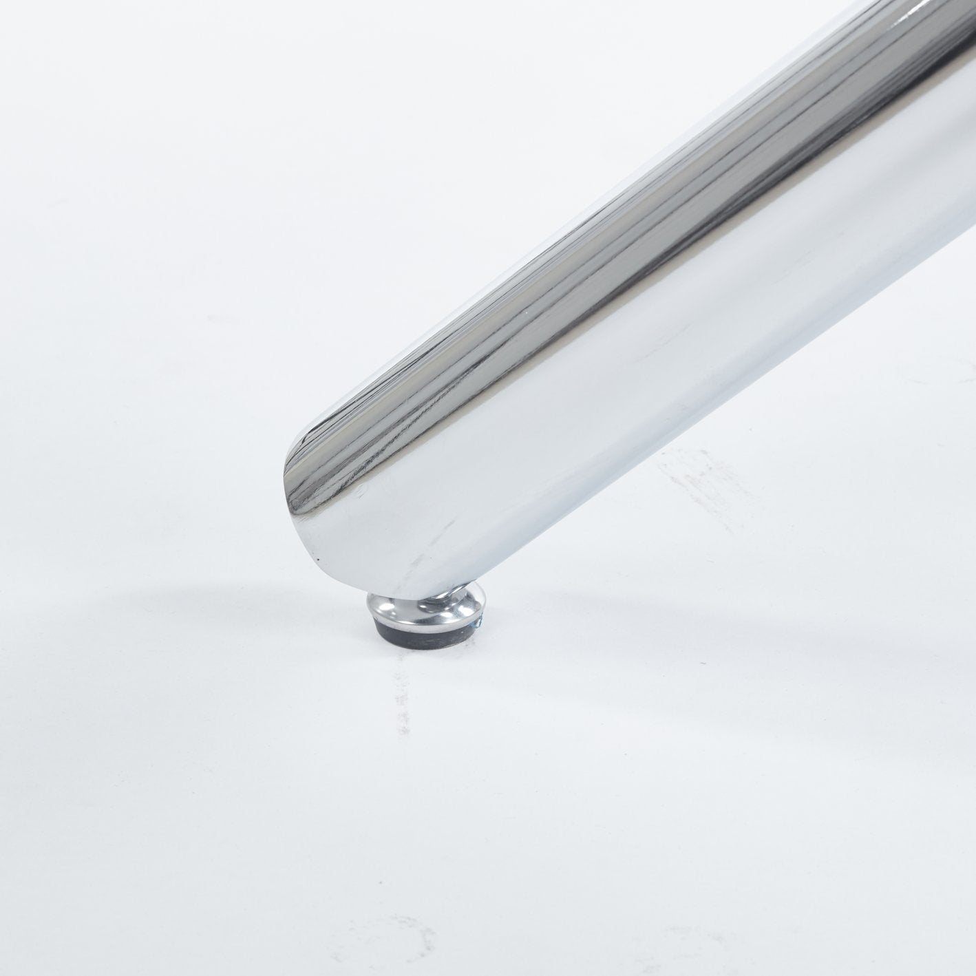 - Materials: Tempered glass tabletop paired with metal legs finished in chrome/black for a durable, modern look.