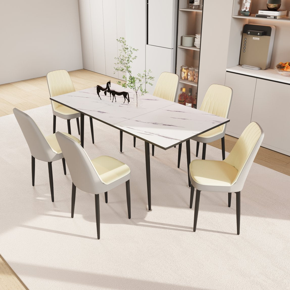 - 7.Modern dining table and chair set: Simple and expandable dining table with 6 chairs. Our seats are designed ergonomically, so even if you sit for a long time, the thick cushions will not make you tired. The backrest is filled with a large amount of doll cotton, providing comfortable support for the back.