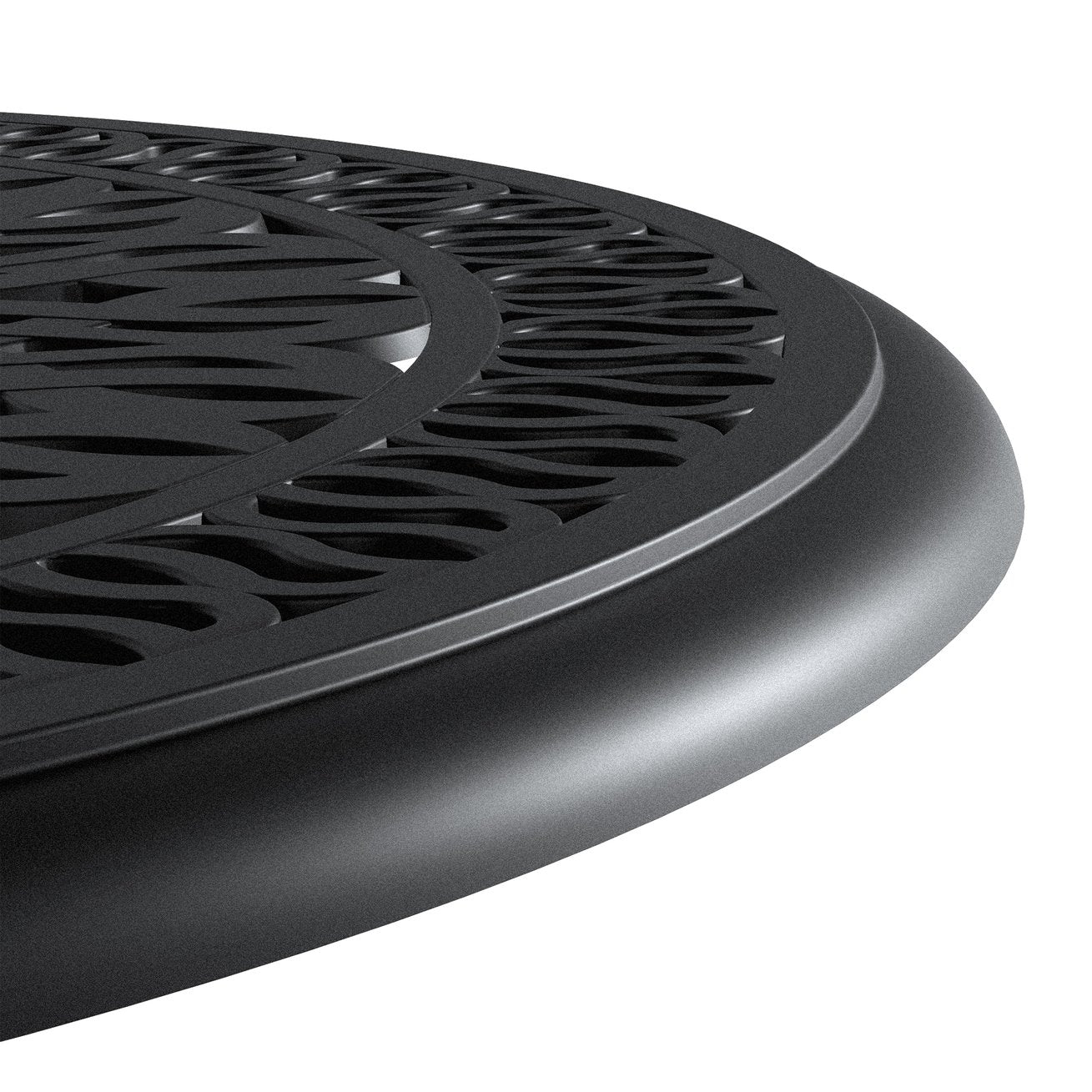 - Material & finish: All-weather cast aluminum frame with a black powder-coated finish for rust resistance and low maintenance