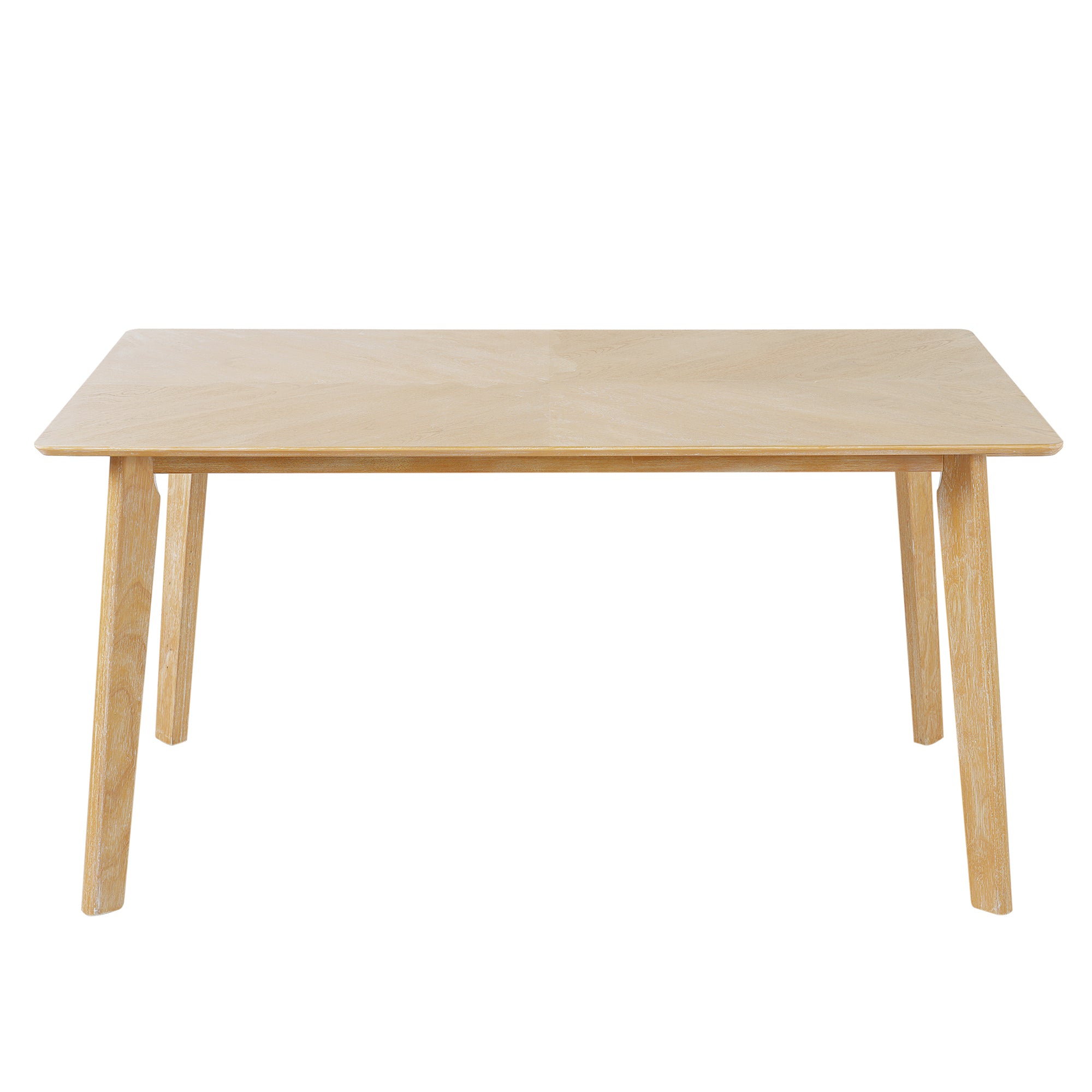 Bring rustic farmhouse charm to your dining space with this 5-piece solid-wood dining set designed for everyday family use and casual entertaining. The rectangular table’s natural wood-wash finish pairs with four upholstered chairs to create a warm, inviting look that balances sturdy construction with comfortable seating. Thoughtfully engineered for durability and easy maintenance, this set offers a practical, stylish solution for four-person dining.