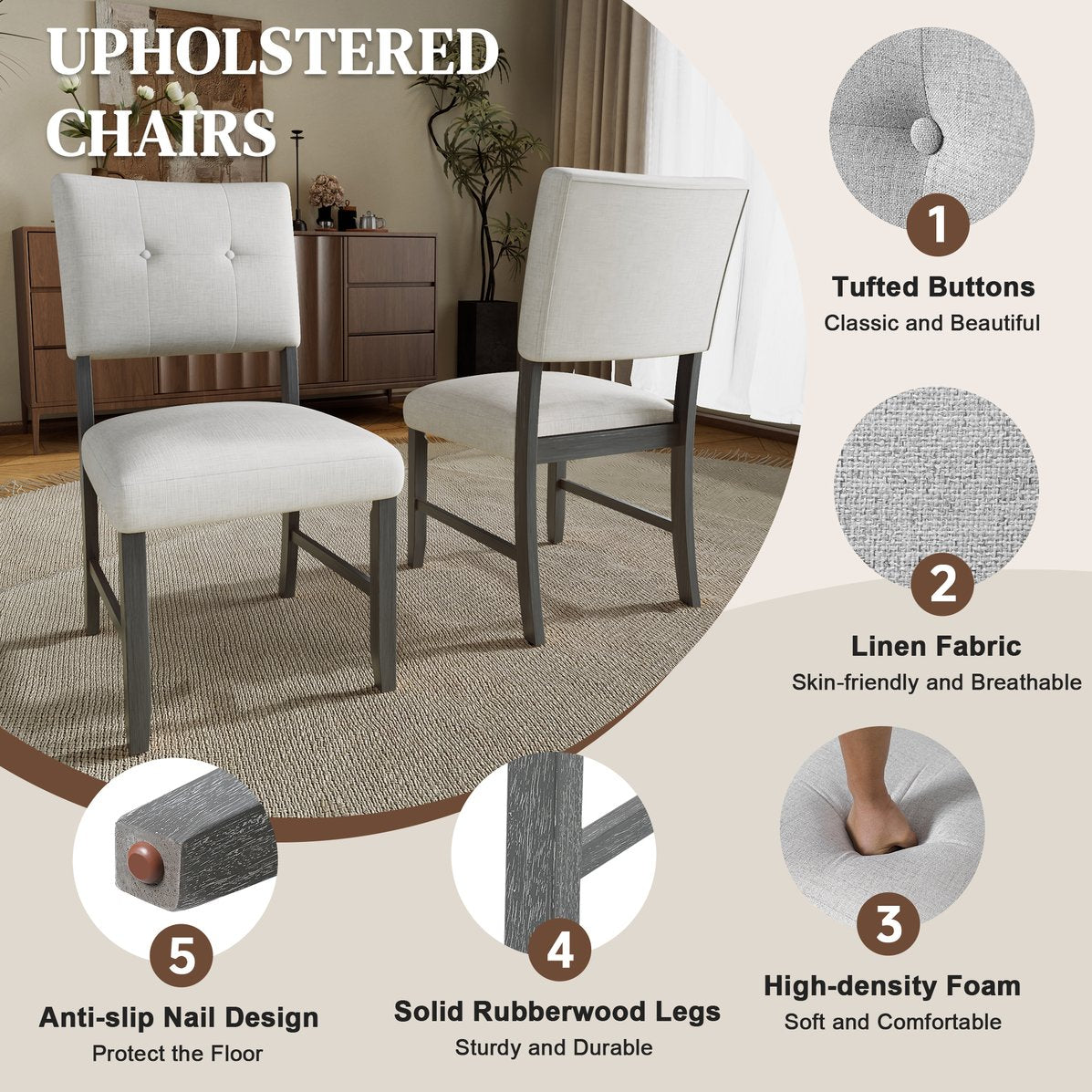 - Pieces Included: 1 rectangular dining table and 4 upholstered dining chairs (5 pieces total).