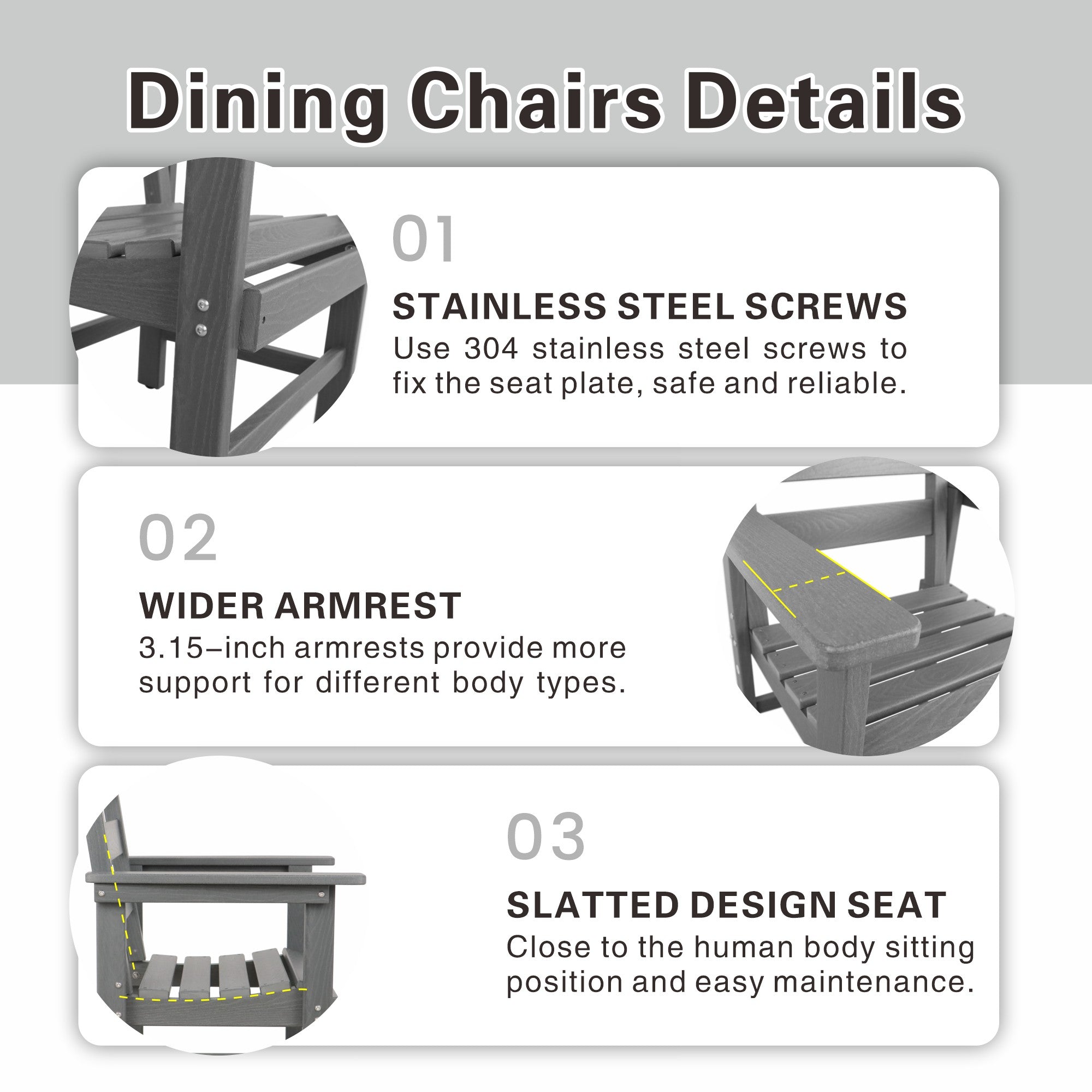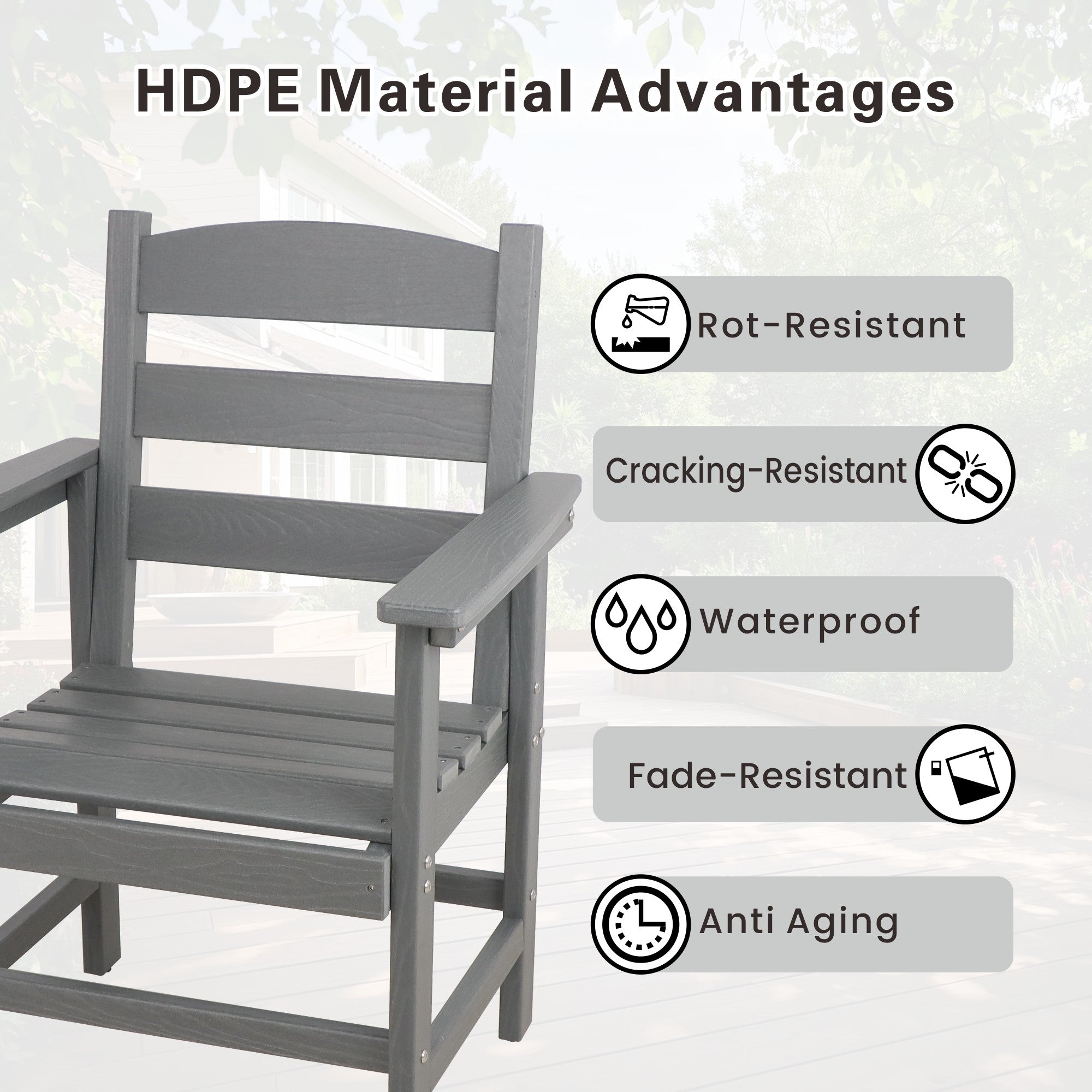 - All-Weather Durability: HDPE's inherent strength and weather-resistant properties make this 5-piece outdoor dining set impervious to the elements. From scorching sun to pouring rain, your garden, backyard, lawn, or poolside will remain elegantly furnished.