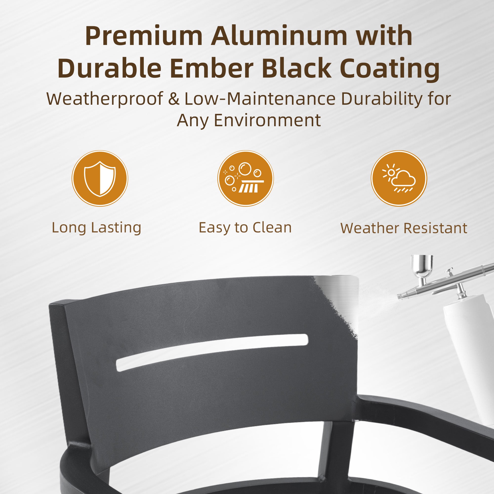 - Finish & durability: Ember Black aluminum resists rust and corrosion; materials selected for outdoor performance and low maintenance.