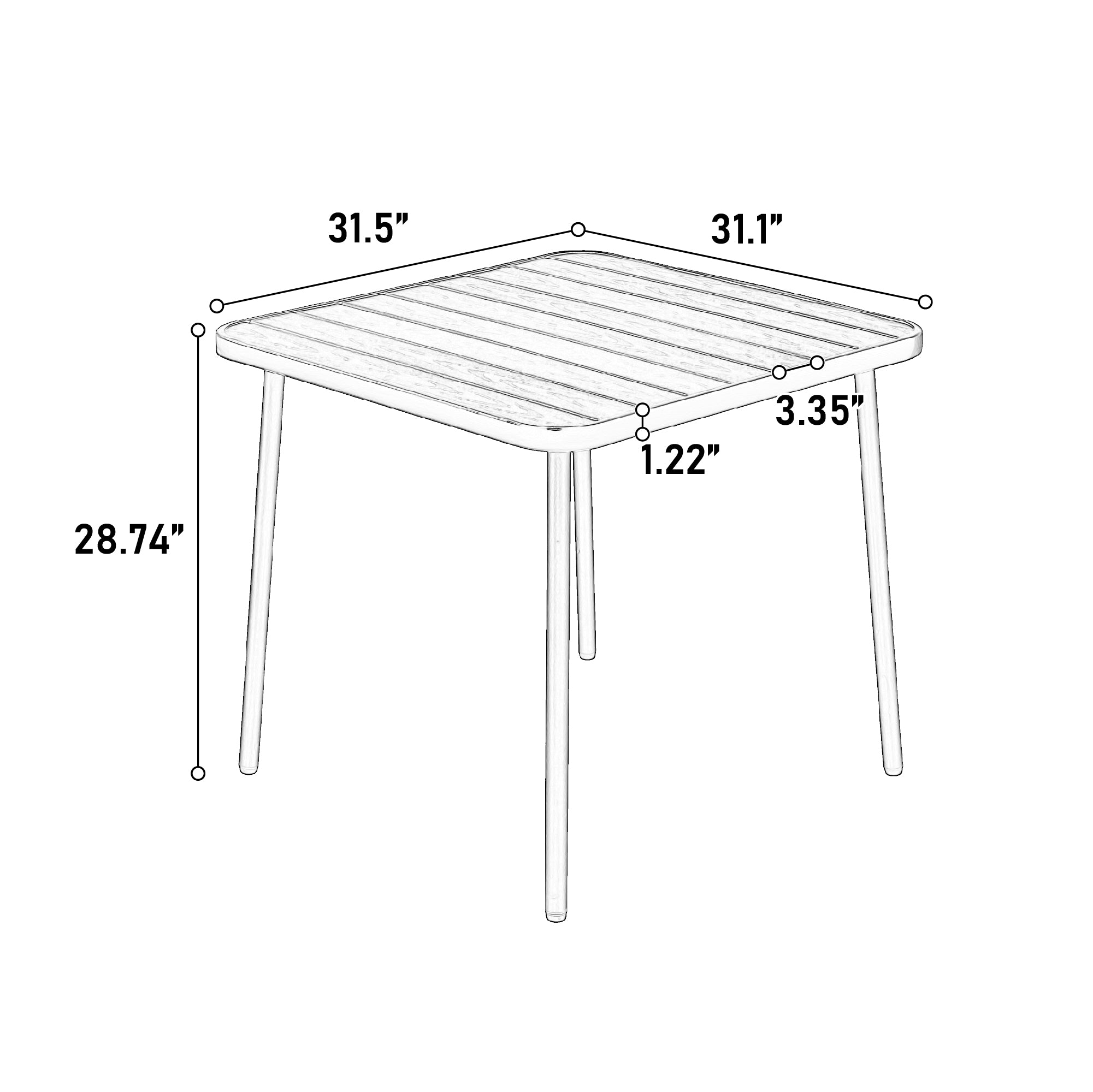 - Modern steel tabletop: Square steel surface for a contemporary look and reliable support; includes a centered umbrella hole for easy shade setup.