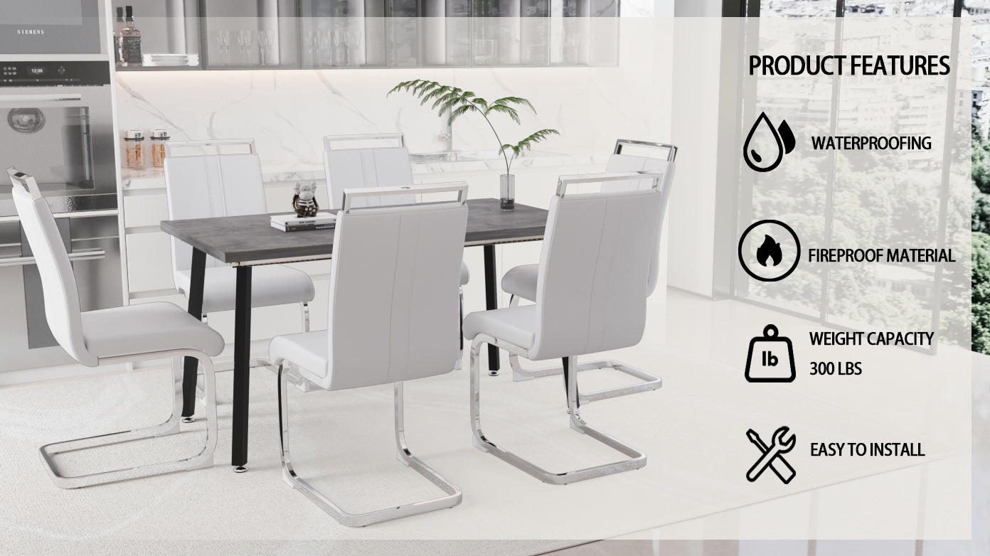 - Comfortable seating: Six C-shaped tubular armless chairs with thick foam cushions and faux leather (PU) upholstery offer ergonomic back support and comfortable seating for extended meals.