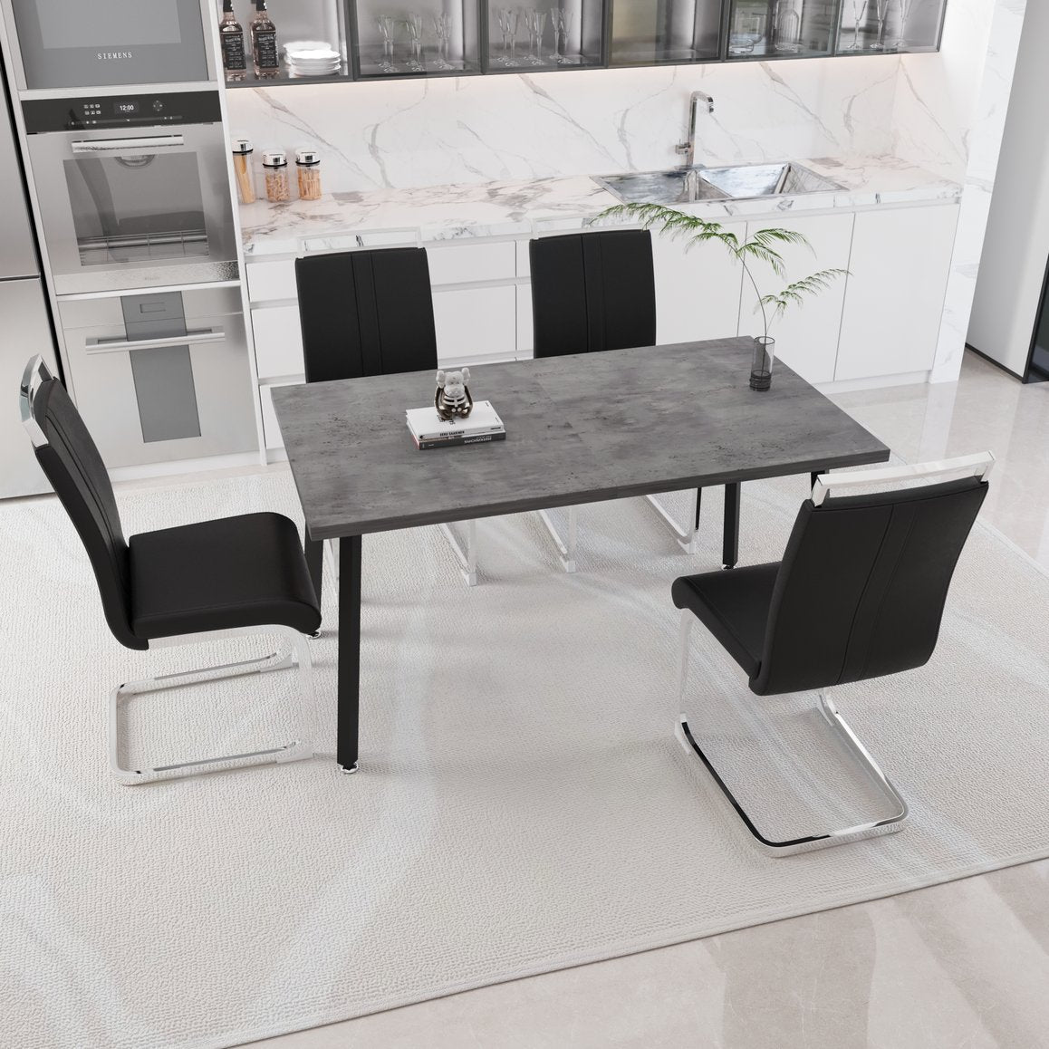Create a welcoming and adaptable dining area with this modern expandable square table and four cushioned C-shaped armless chairs. Designed for everyday family meals and occasional gatherings, the set blends industrial-inspired styling with practical materials for easy maintenance and lasting comfort. Its compact footprint that expands when needed makes it ideal for apartments, kitchens, or casual dining spaces.