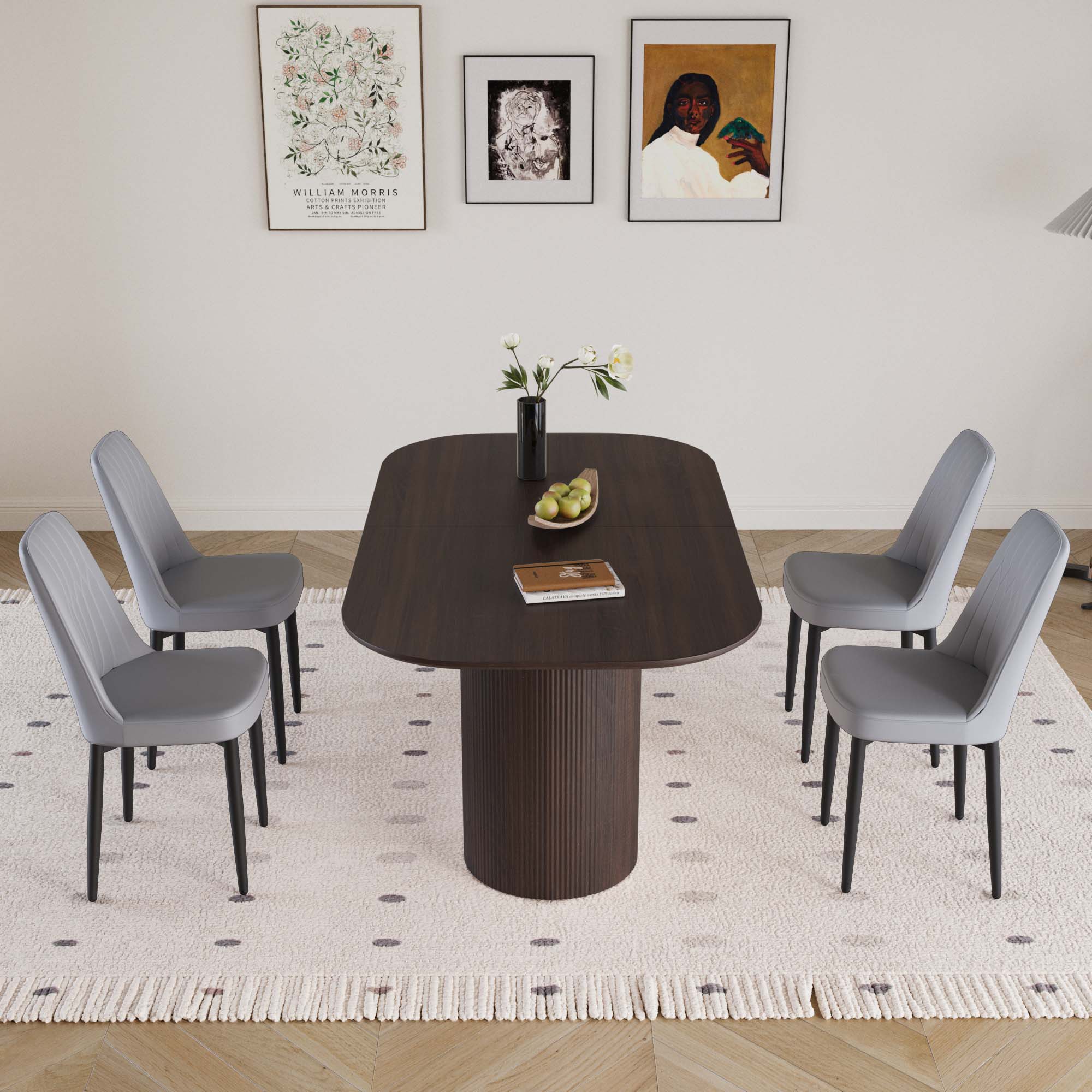 - 8.5 sets of tables and chairs: a table that can accommodate 4-8 guests for gatherings and 4 ergonomic artificial leather modern luxury style dining chairs, creating a fashionable focus for you in the dining area.