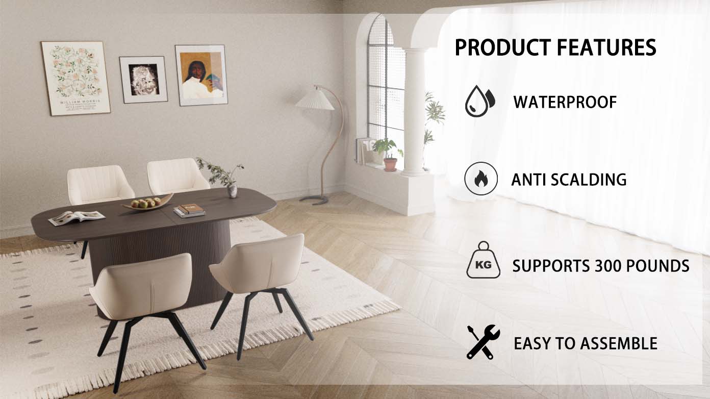 - 8.5 sets of tables and chairs: a table that can accommodate 4-8 guests for gatherings and 4 ergonomic artificial leather modern luxury style dining chairs, creating a fashionable focus for you in the dining area.