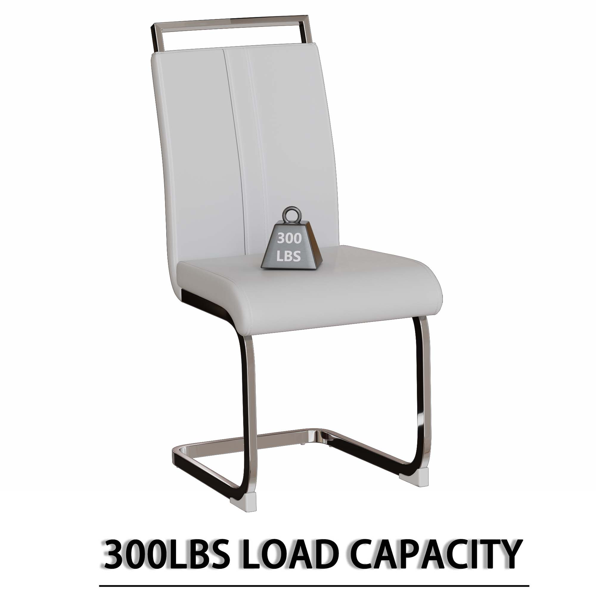- 8.Durable and sturdy: The sturdy white leather dining chair is equipped with a C-shaped silver plated base, creating a unique modern appearance. The bottom has scratch resistant plastic feet to prevent damage to the floor.