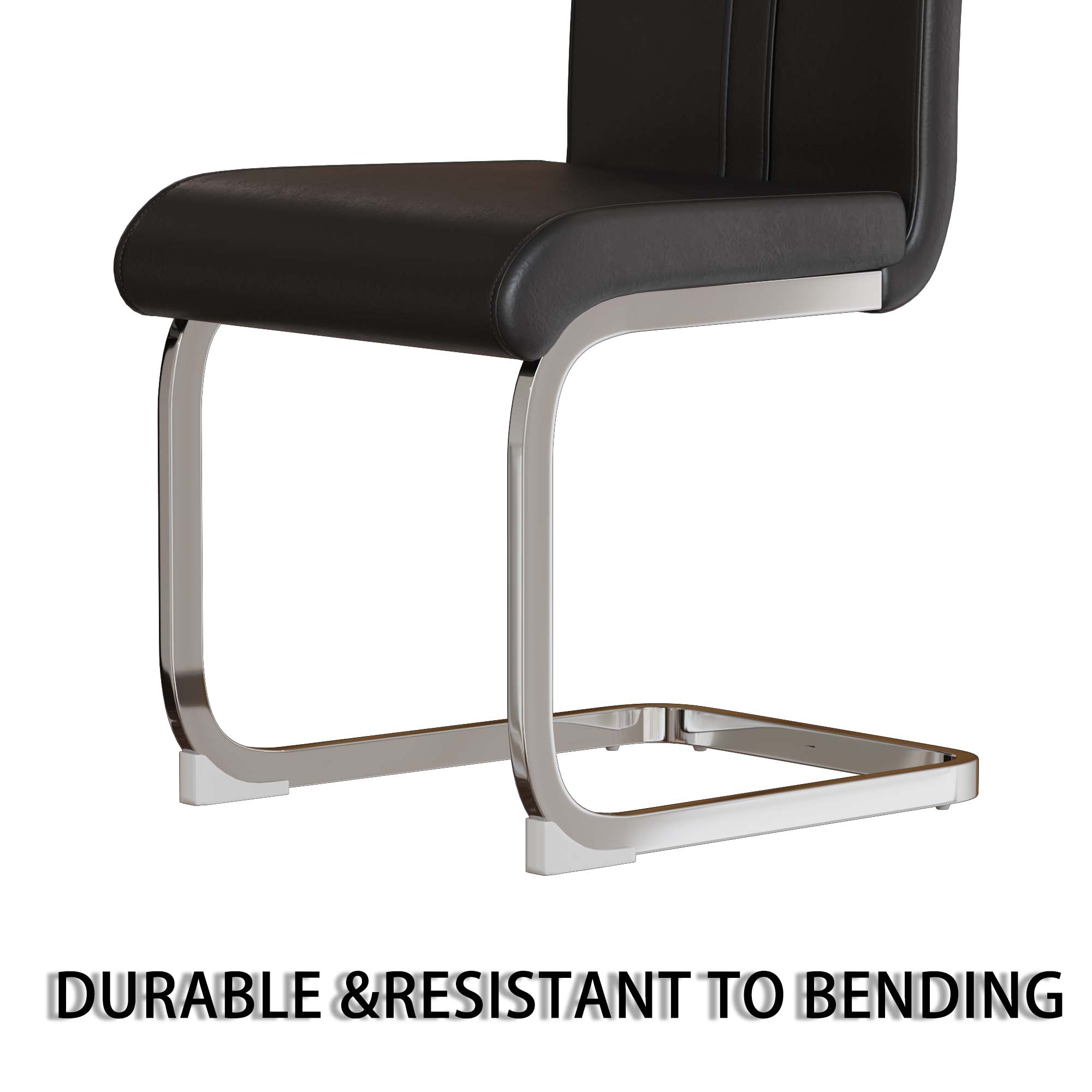 - 8.Durable and sturdy: The sturdy black leather dining chair is equipped with a C-shaped silver plated base, creating a unique modern appearance. The bottom has scratch resistant plastic feet to prevent damage to the floor.