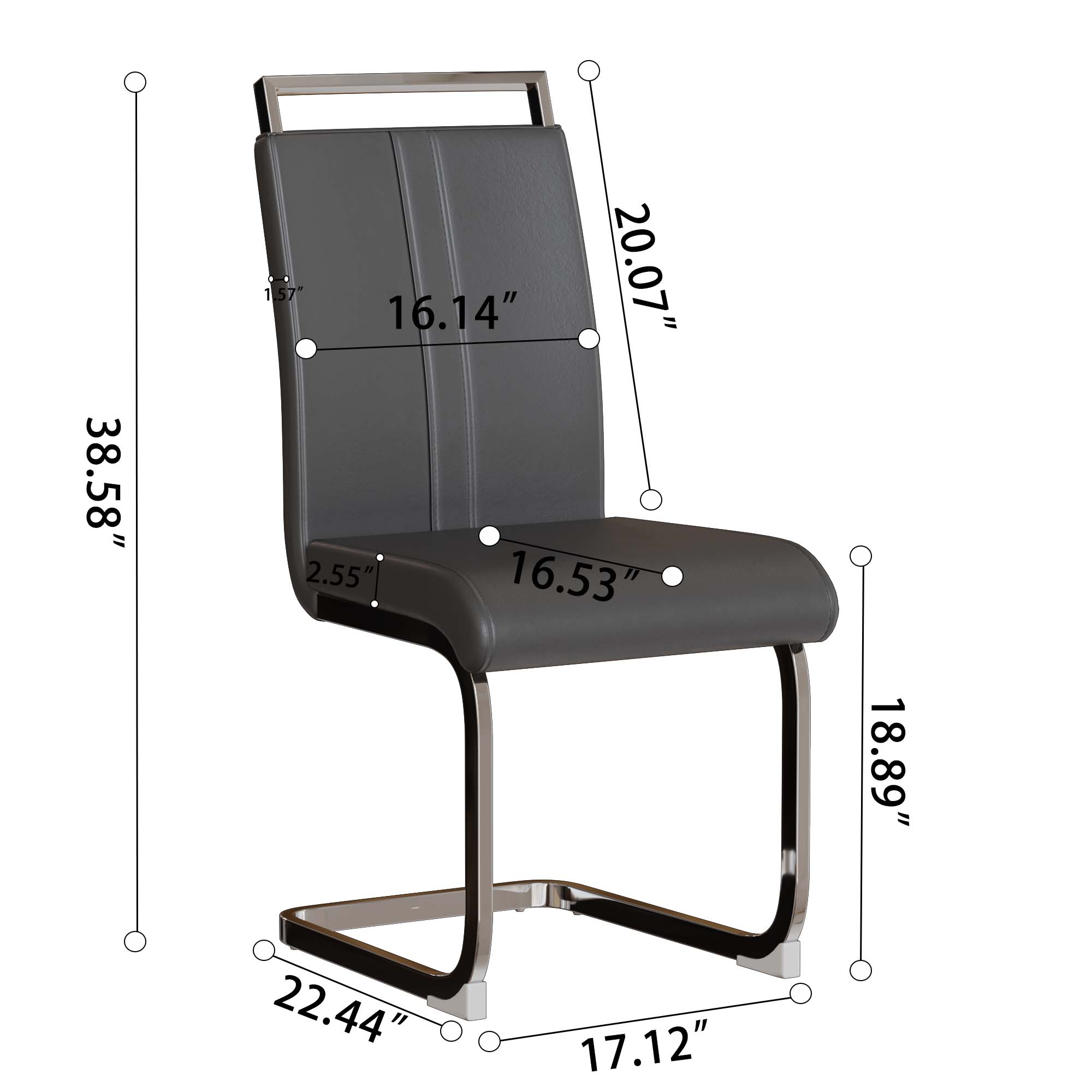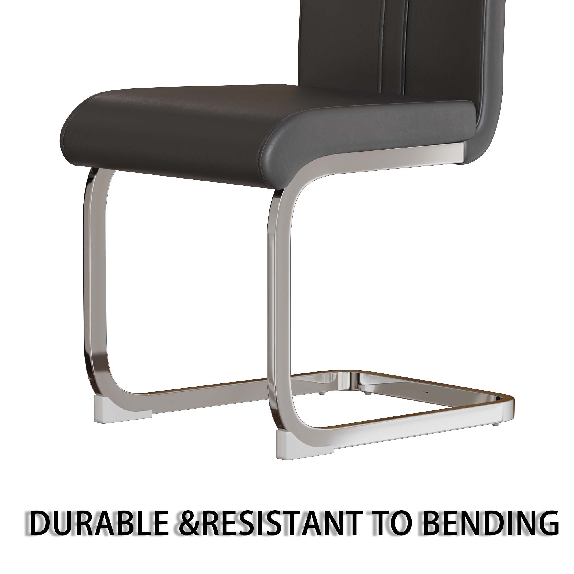 - 8.Durable and sturdy: The sturdy gray leather dining chair is equipped with a C-shaped silver plated base, creating a unique modern appearance. The bottom has scratch resistant plastic feet to prevent damage to the floor.