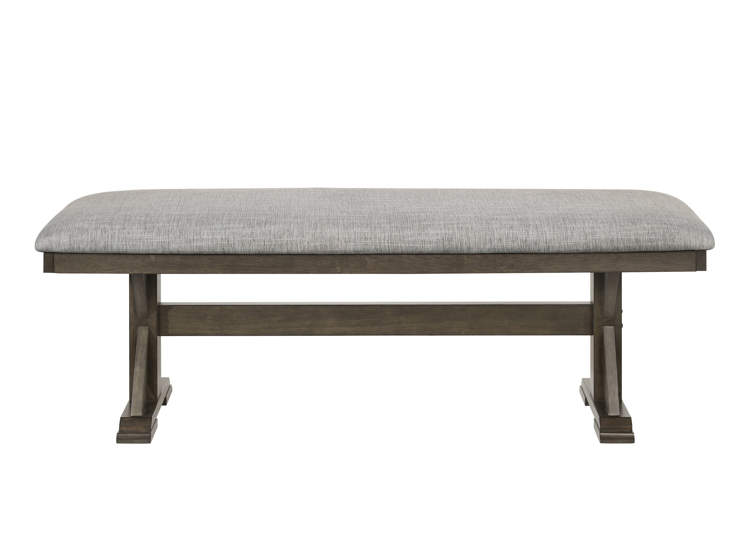 - Seating: Upholstered side chairs and bench feature soft, neutral fabric and comfortable padding for supportive, all-day seating.
