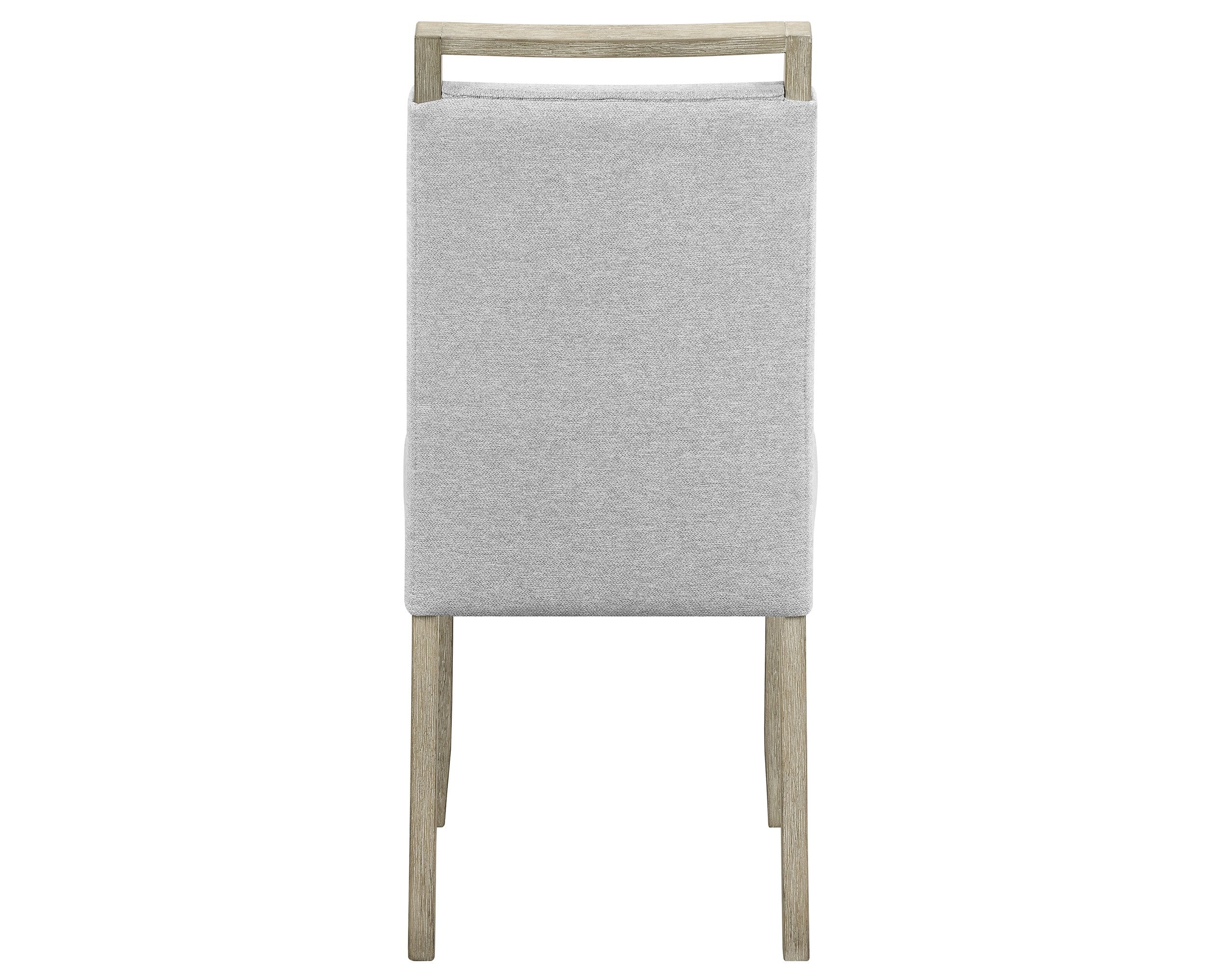 - Versatile style: Neutral beige/gray upholstery and modern lines suit a wide range of dining room decors from minimalist to transitional.