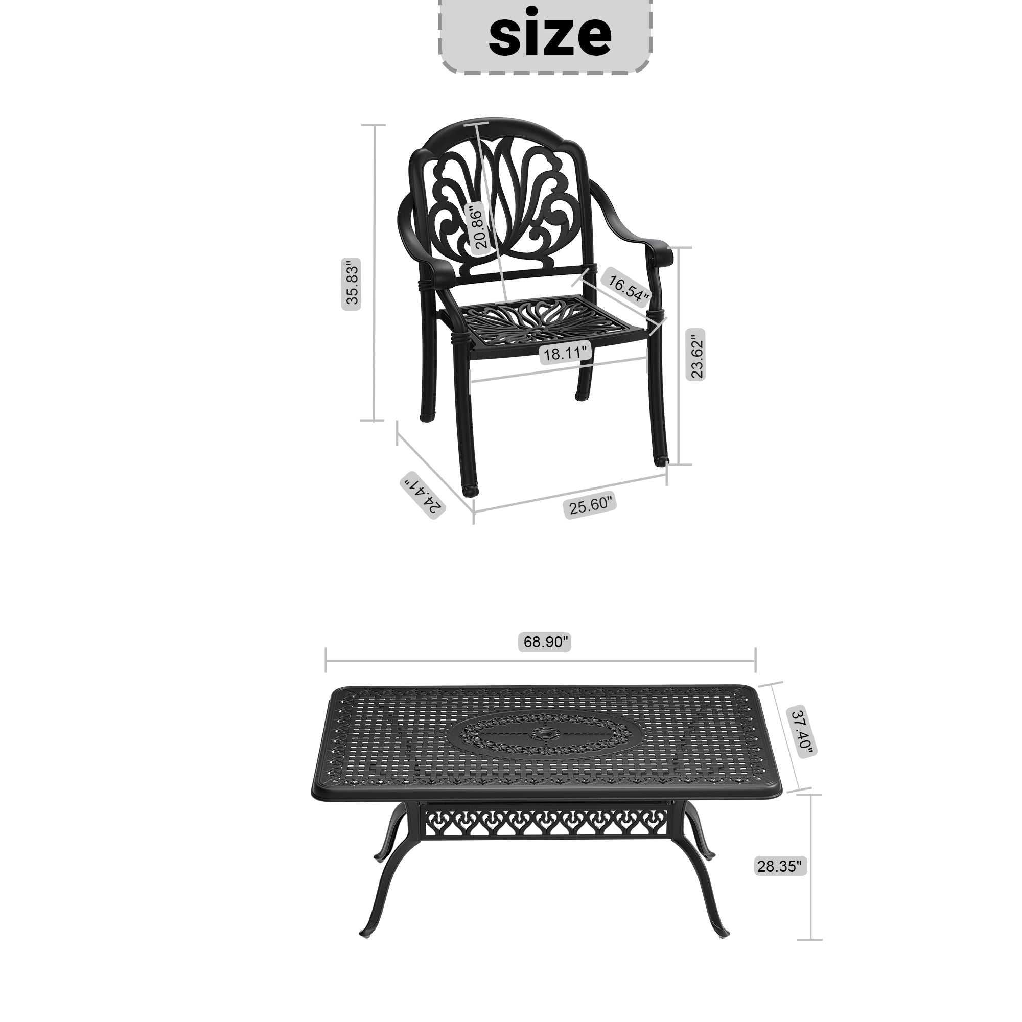 - Traditional casting process is used to produce chairs and tables with exquisite carved lines or various patterns such as petals and rectangles, presenting an elegant and beautiful appearance. This design eliminates monotony and adds a touch of charm to your outdoor space, creating a delightful atmosphere for dining and relaxation.