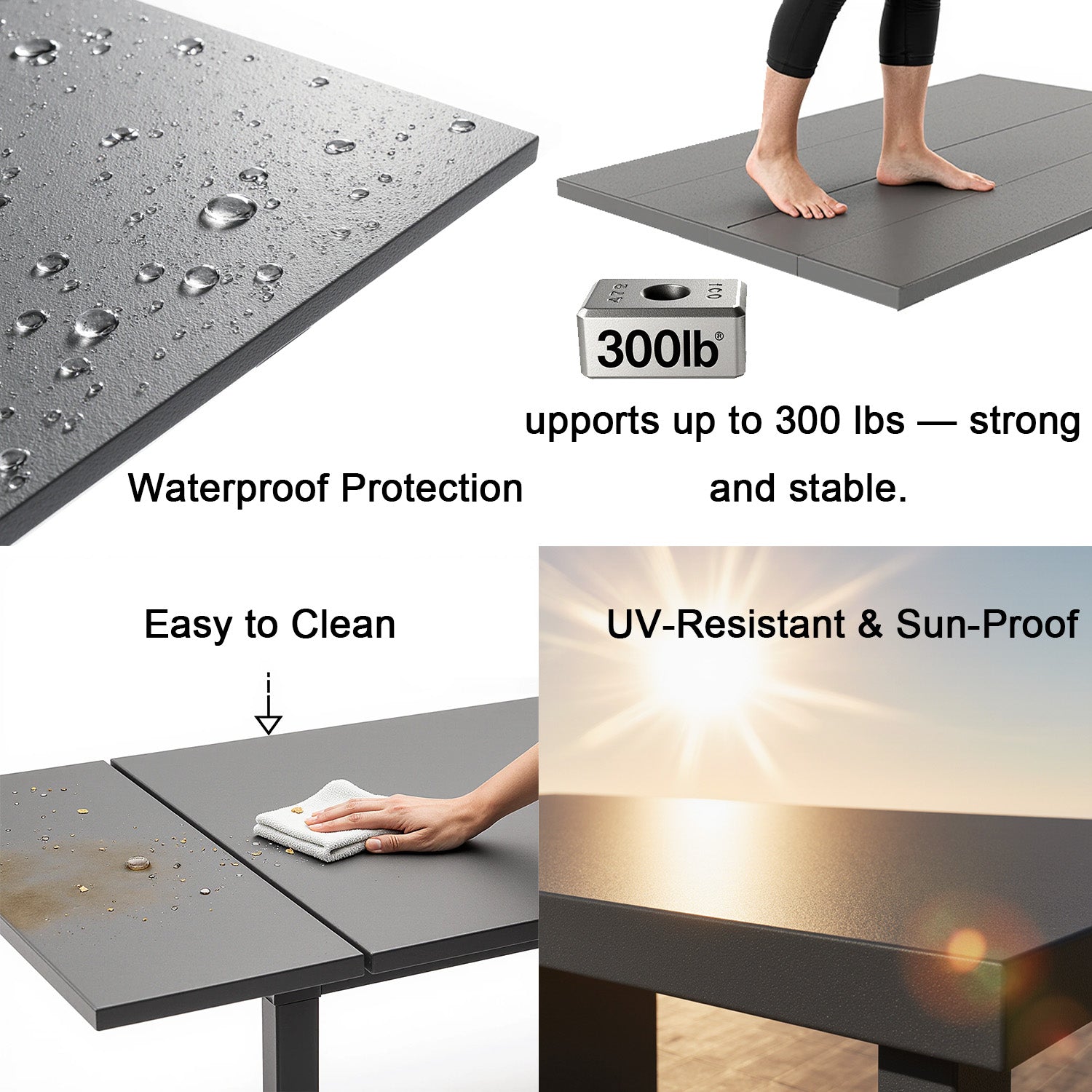 - Weather-Resistant: Designed to withstand sun, rain, and humidity; minimal upkeep required—simply rinse with water or wipe clean.