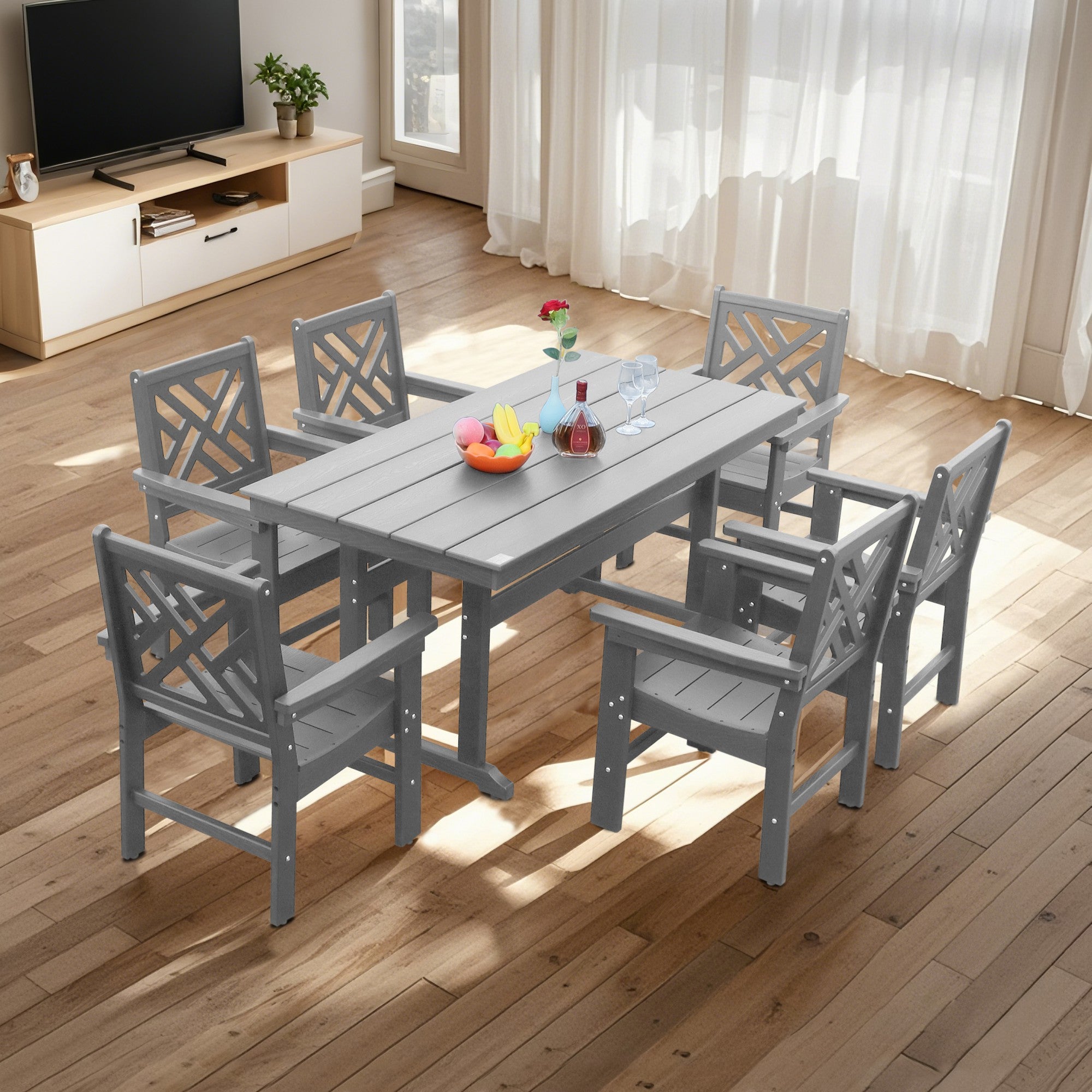 Create a welcoming outdoor dining area with a durable, low-maintenance 7-piece HDPE patio set designed to seat six comfortably. This neutral grey collection combines weather-resistant performance with contemporary styling, making it an ideal choice for garden, backyard, lawn, or poolside dining and entertaining.