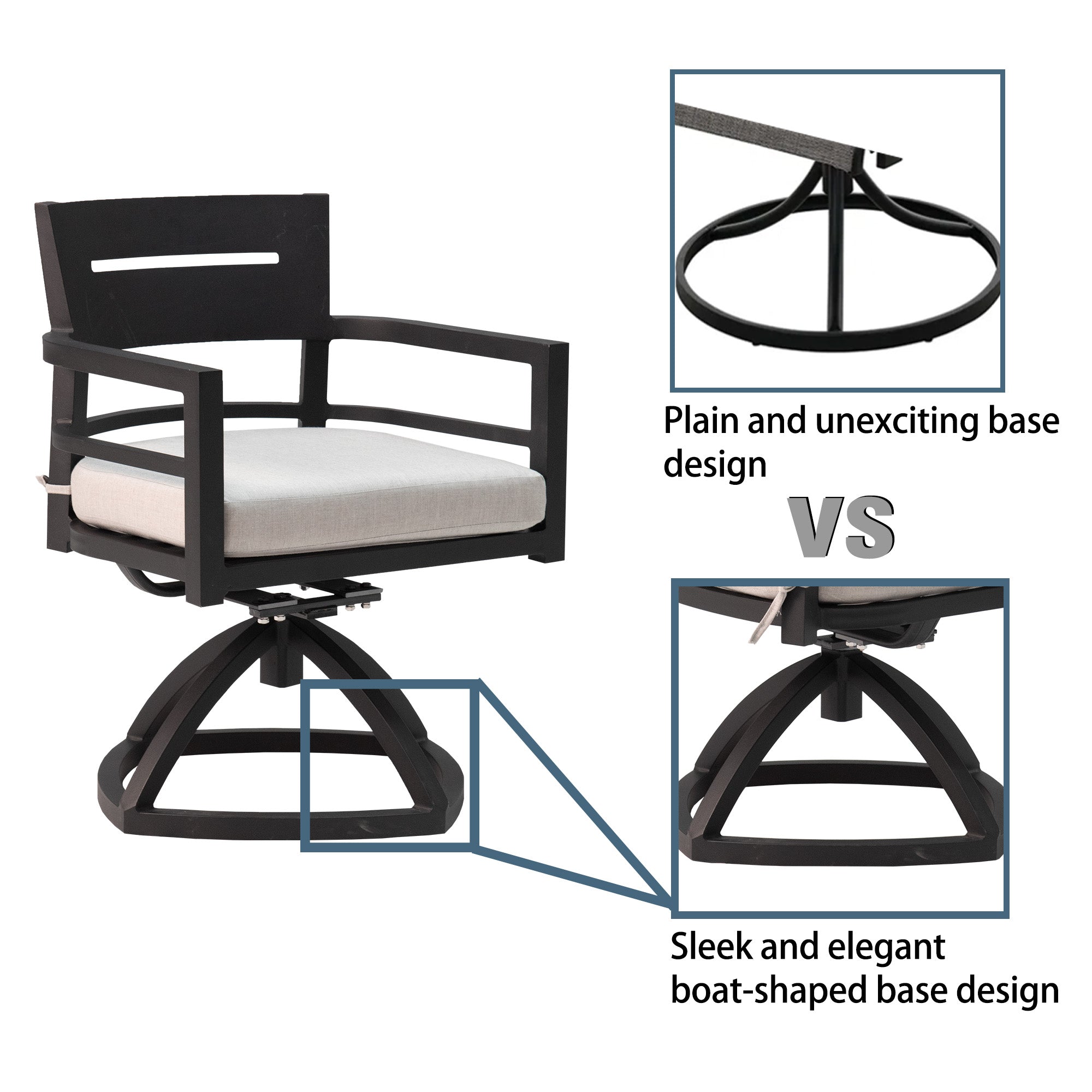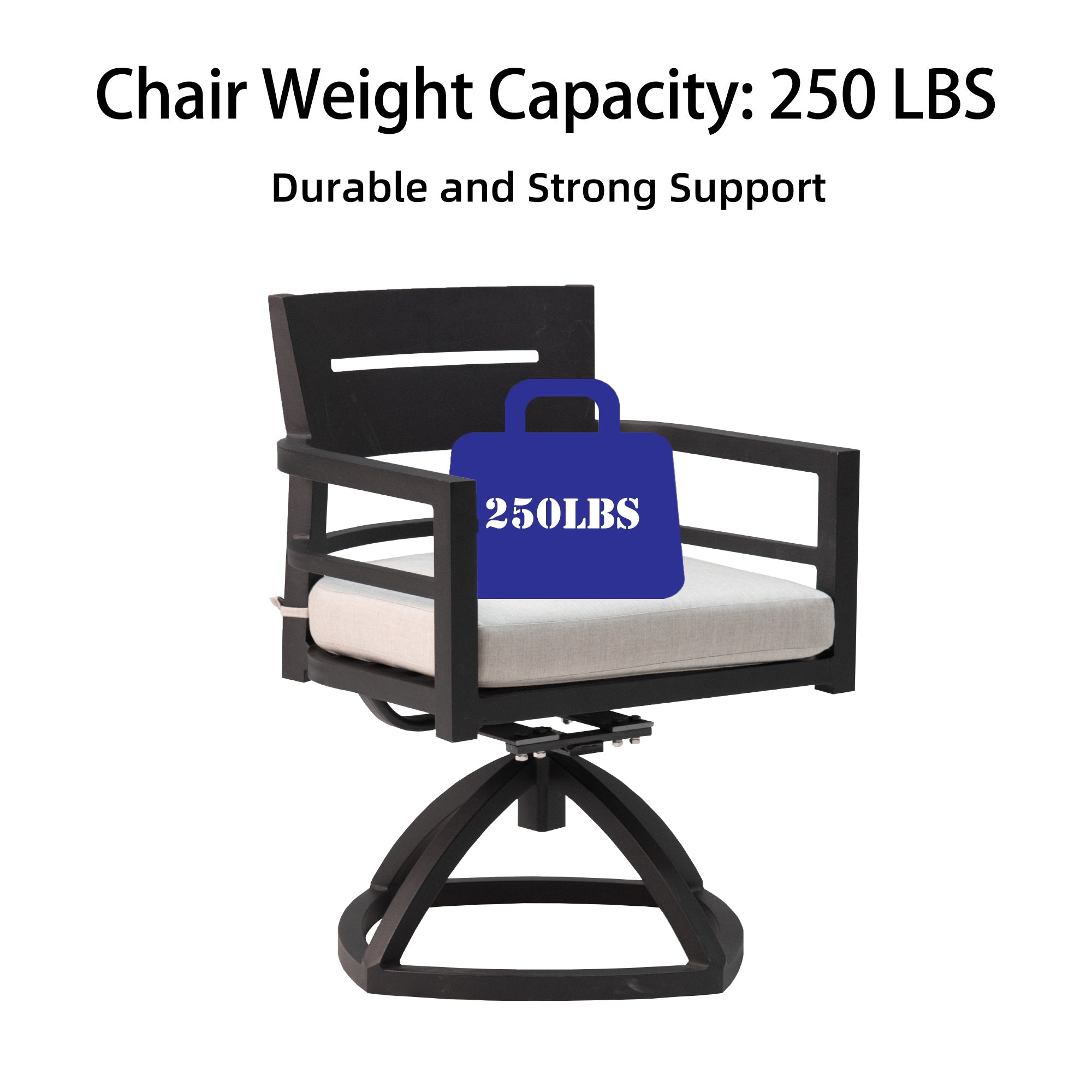 - Durable and lightweight aluminum material.Built for enduring outdoor enjoyment: Constructed from high-grade aluminum, this patio furniture set boasts exceptional durability that can withstand the elements. The lightweight aluminum frame makes it easy to move and rearrange, while its rust-resistant properties ensure years of worry-free use.