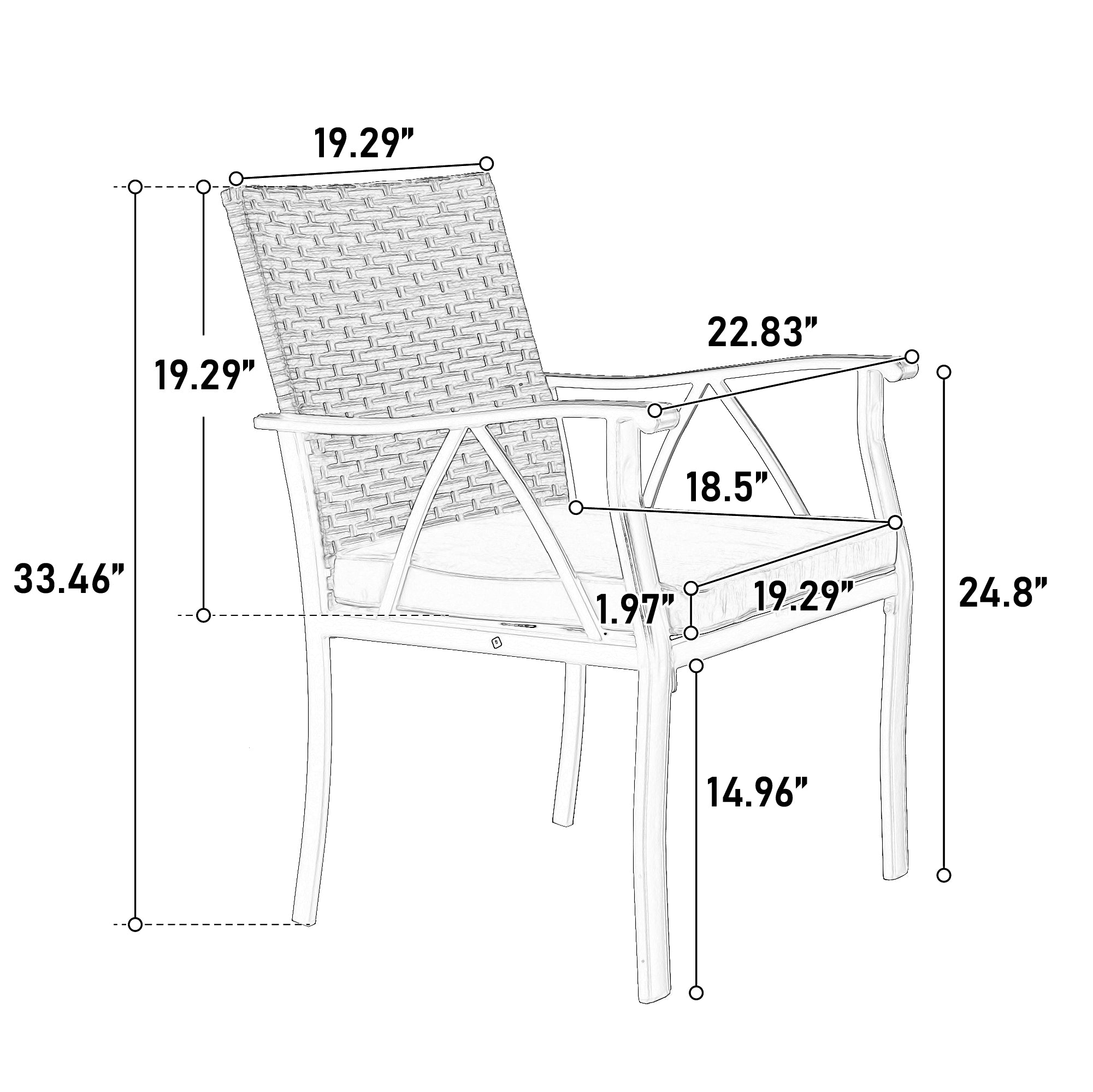- Comfort features: High-back, ergonomically curved wicker chairs with deep seating; thick foam cushions wrapped in machine-washable Olefin/polyester fabric; cushions are removable and can be securely fastened to chairs