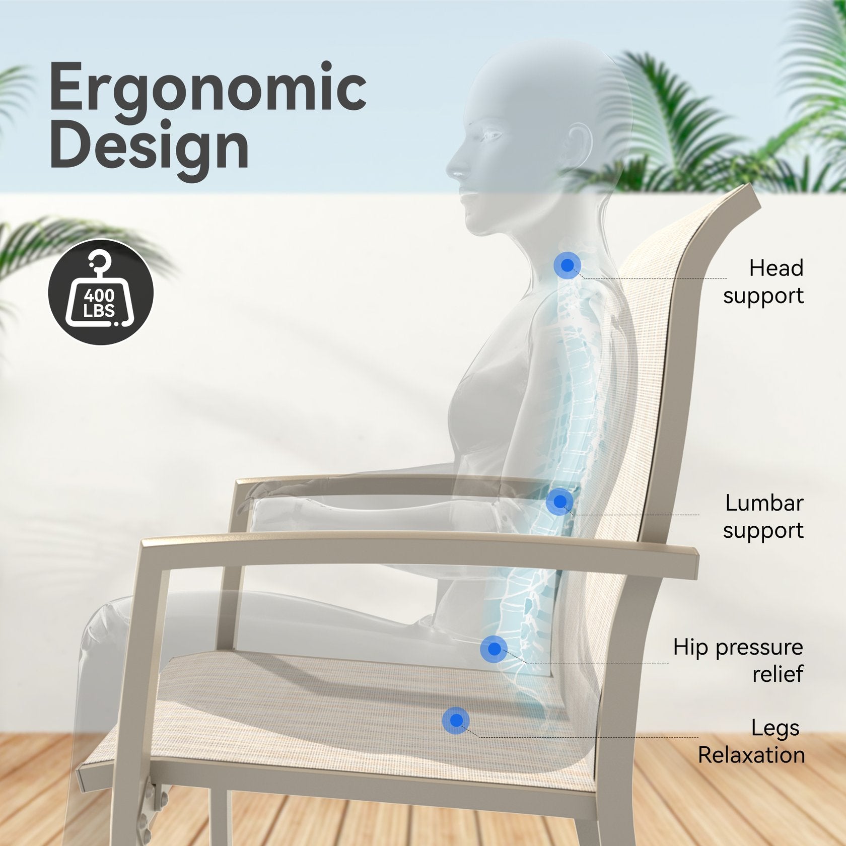 - Weather-Resistant Materials: Powder-coated metal tabletop resists cracking and high temperatures; Textilene fabric seats are breathable, quick-drying, and ideal for hot weather.