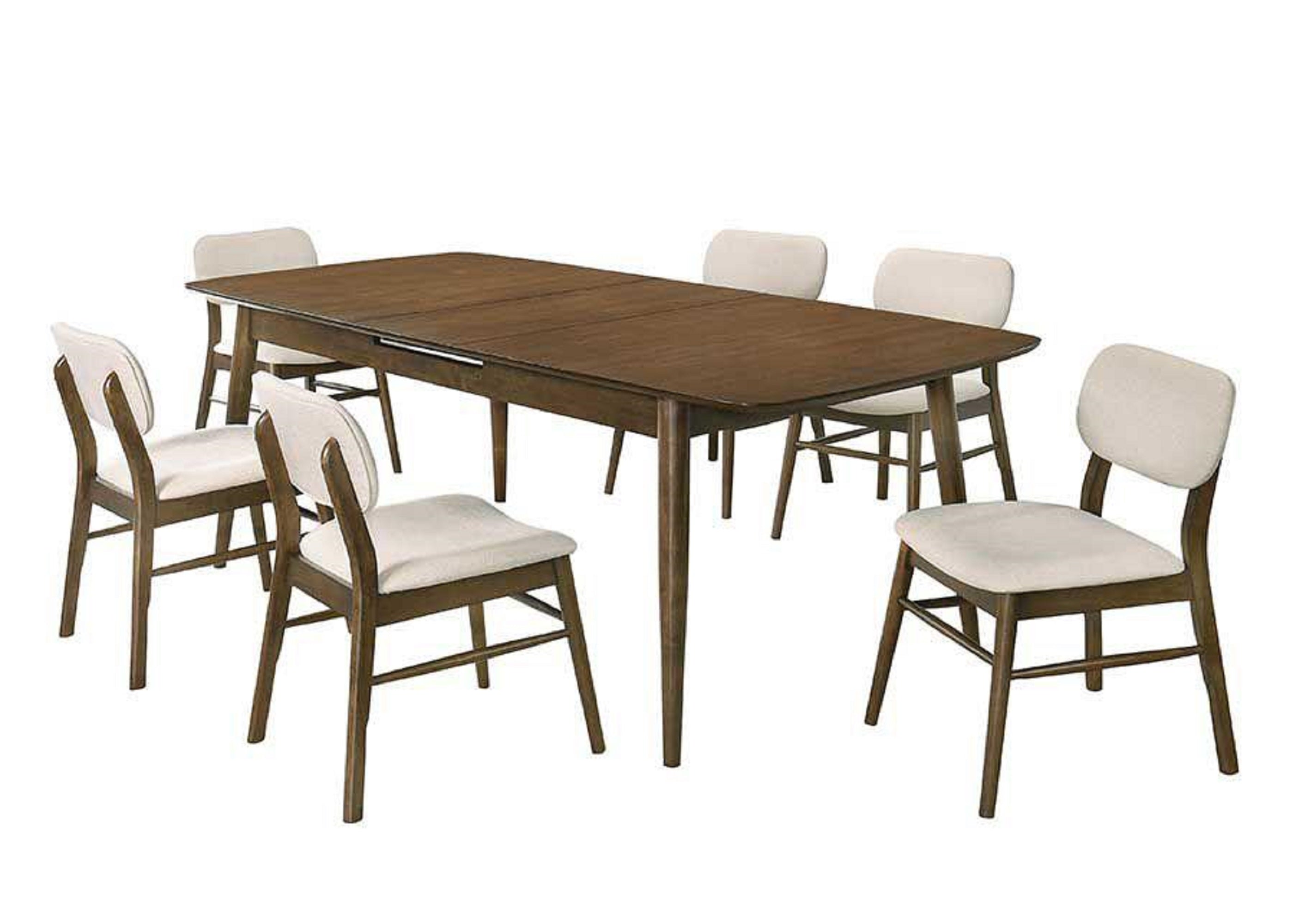 Bring modern elegance and everyday functionality to your dining space with this 7-piece rectangular dining set. Thoughtfully designed for contemporary living, the set pairs a versatile extendable table with six comfortable upholstered chairs, offering a refined look and practical operation for both intimate meals and larger gatherings.