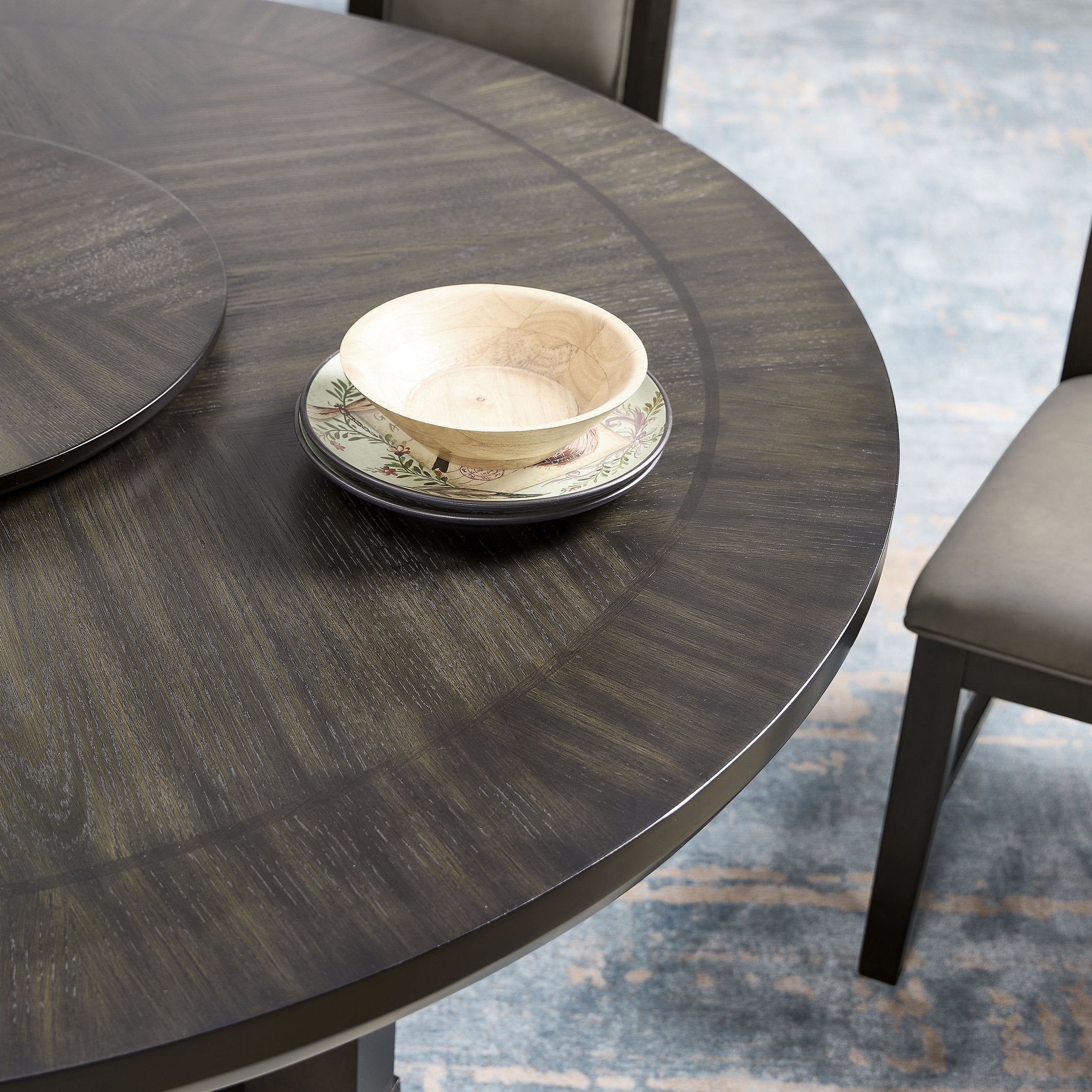 Elevate your dining space with this casually refined 5-piece dining set, designed for everyday comfort and stylish entertaining. The round table with a convenient Lazy Susan promotes conversation and easy sharing, while the PU-upholstered chairs offer cushioned support and a cohesive look in a warm brown finish. Ideal for smaller dining rooms, apartments, or breakfast nooks, this set balances solid wood construction with a transitional aesthetic that complements a variety of decor styles.
