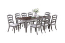 Bring family and friends together around a strikingly detailed dining set that blends contemporary lines with classic craftsmanship. Perfect for everyday meals and special occasions, this 9-piece collection pairs a generous extendable table with eight ladder-back side chairs to create a cohesive, inviting dining room centerpiece.