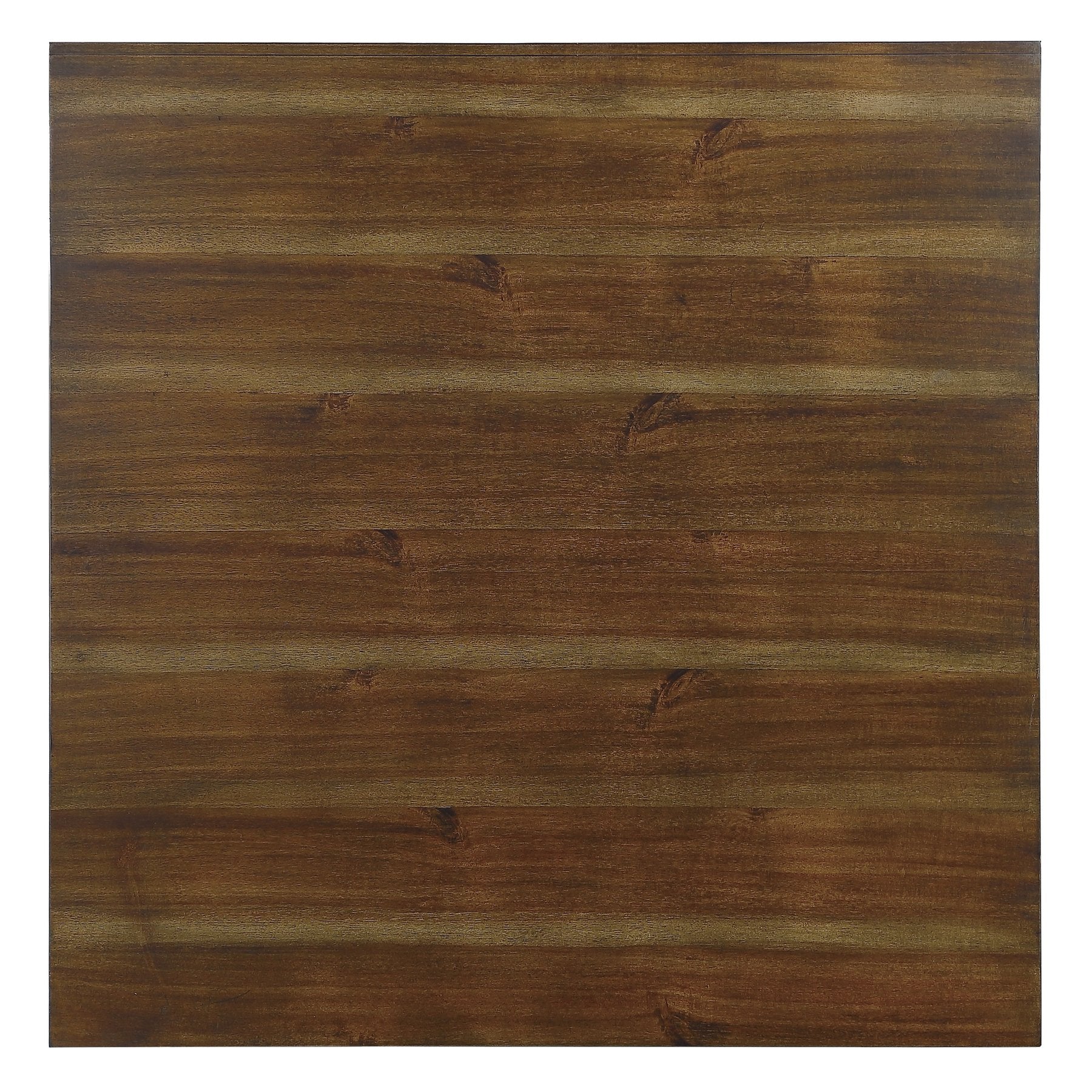 - Materials & Finish: Acacia veneer in a medium brown finish with brown faux leather upholstered chair seats for easy cleaning and lasting comfort